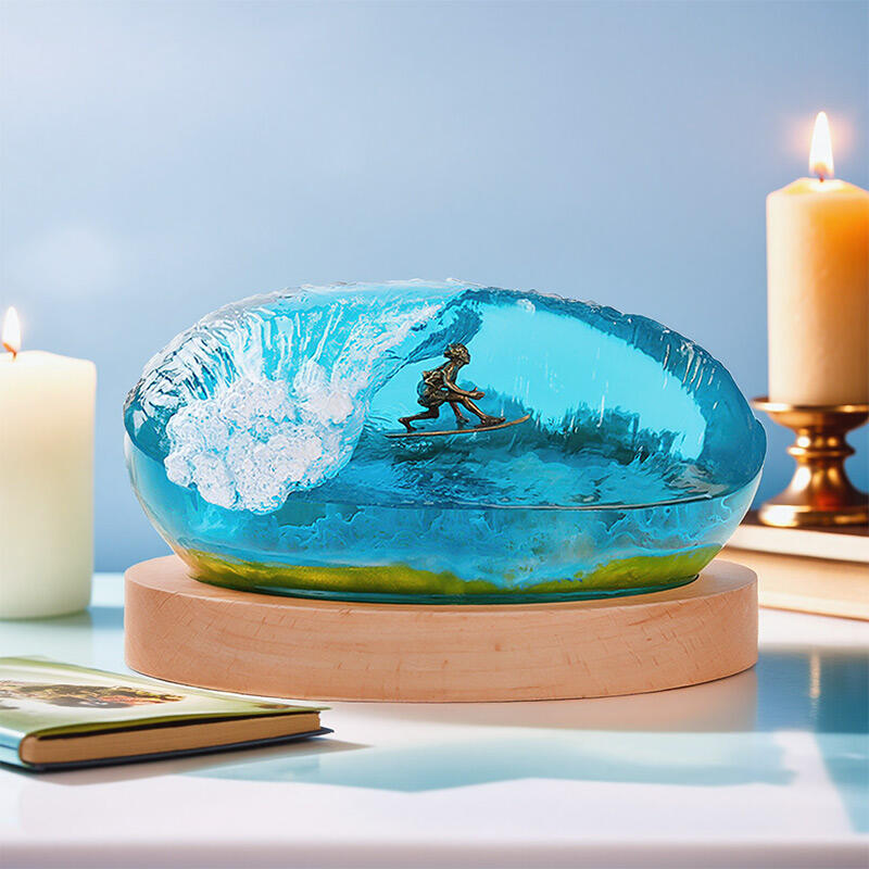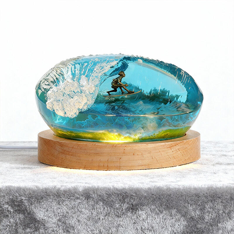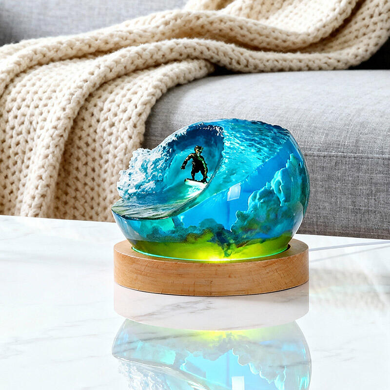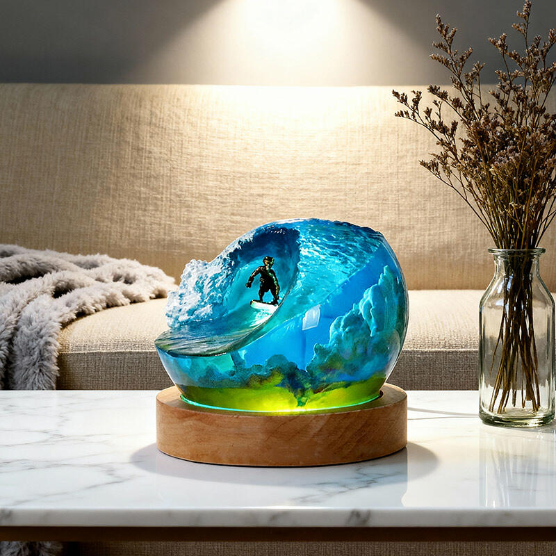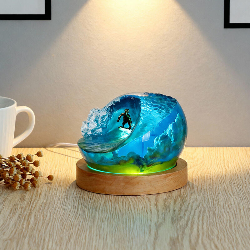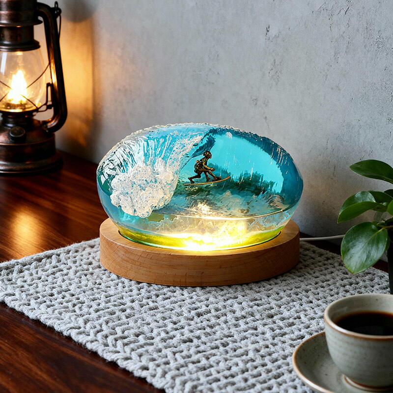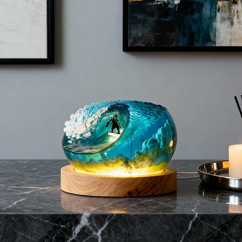 Thrilling Surfing Ocean Resin Night Light – A handmade coastal decor piece that captures the energy of waves and surfers in vivid detail. This unique LED night light features a 3D resin wave design with glowing surfers riding among coral reefs, perfect for adding beach-themed ambiance to bedrooms, living rooms, or offices.
