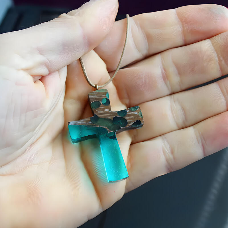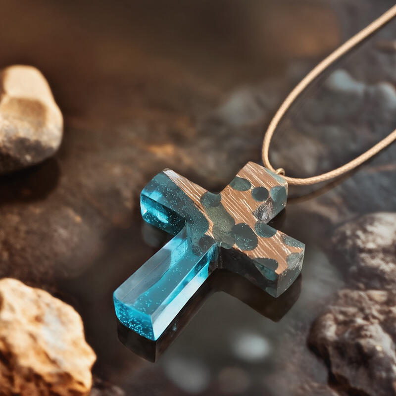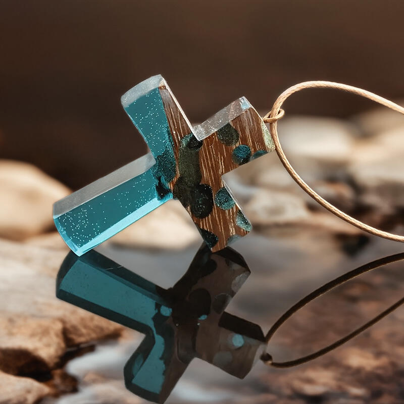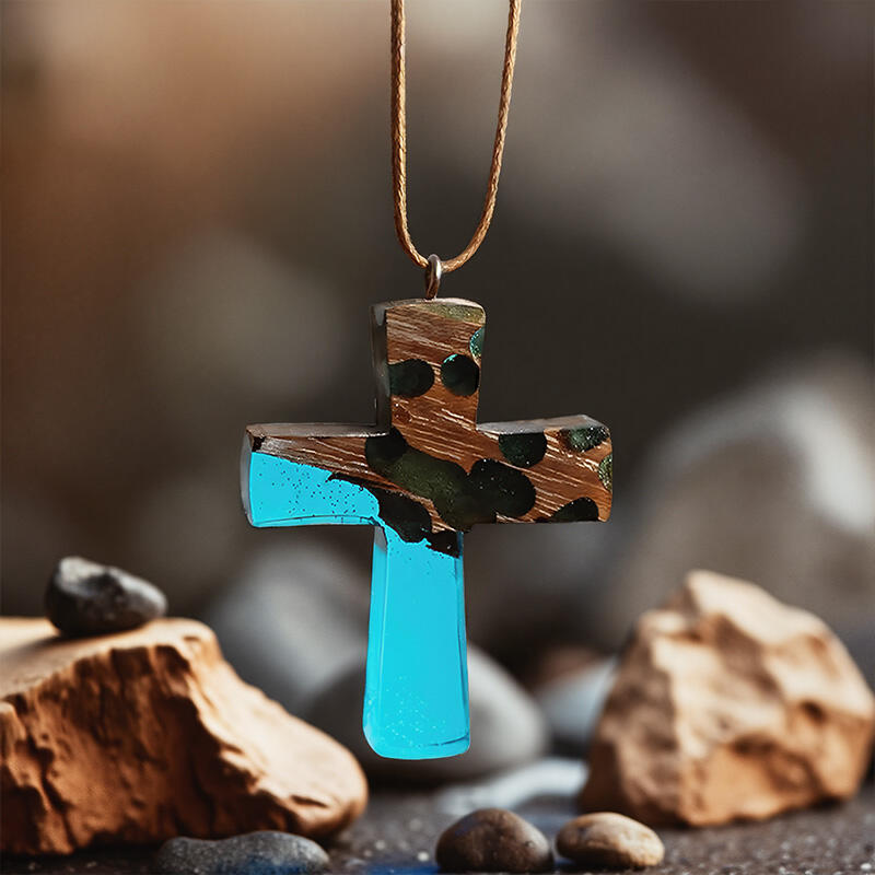 Dear lovers of unique cross-themed jewelry! Reslol is proud to introduce our enchanting rustic blue wood resin cross necklace.