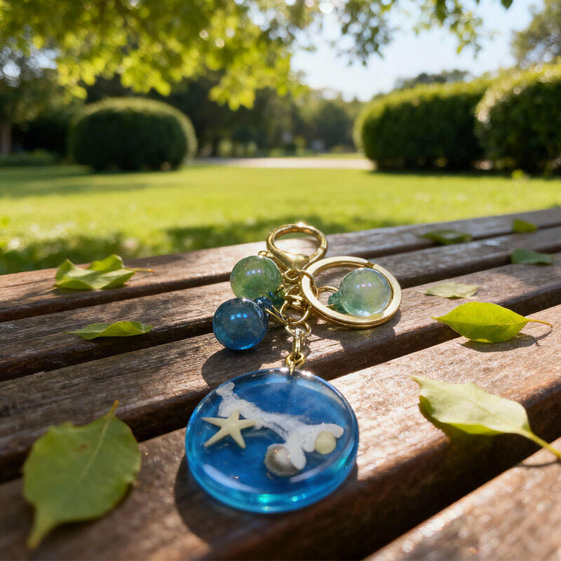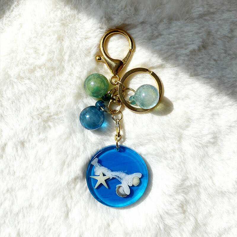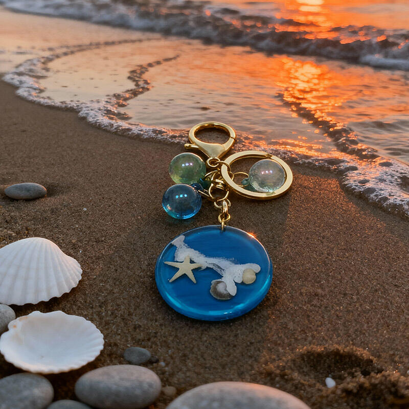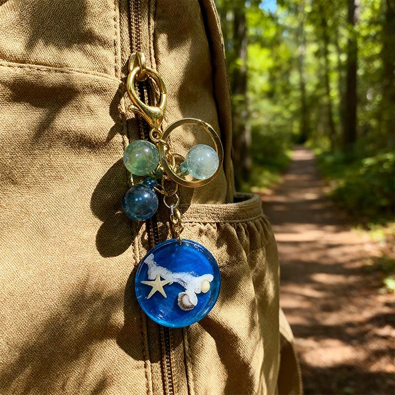 Bring the beach wherever you go with this adorable handmade resin keychain, featuring a round ocean-inspired design with starfish and seashell embellishments. Perfect for beach lovers, travel enthusiasts, and nature admirers, this durable, glossy resin keychain combines artistry with functionality.