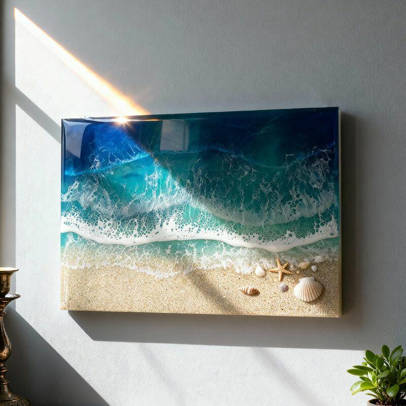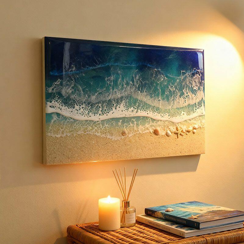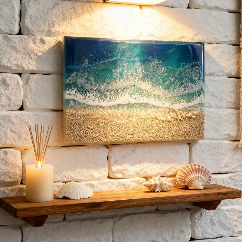 Bring the serene beauty of the coast into your home with Reslol’s handmade resin wall art. Each piece captures the essence of the beach, featuring delicate seashells, starfish, and fluid resin waves, creating a mesmerizing ocean-inspired masterpiece.