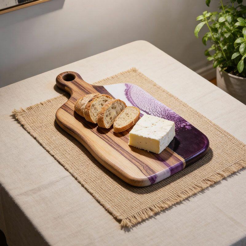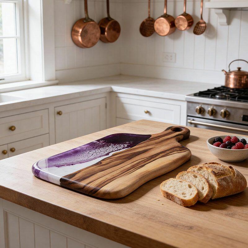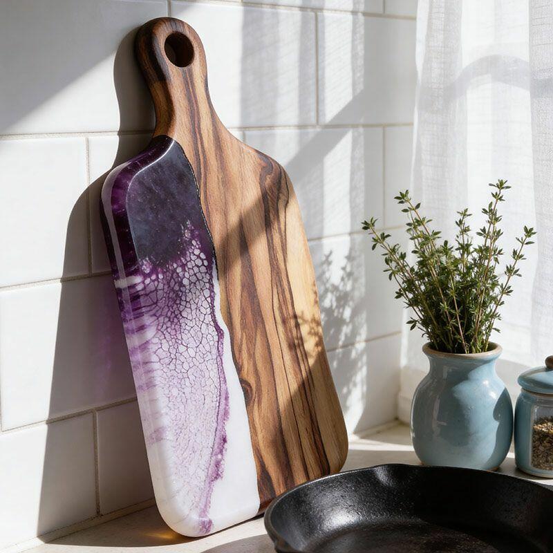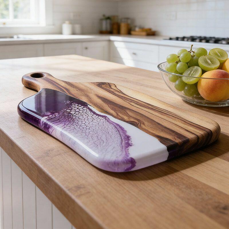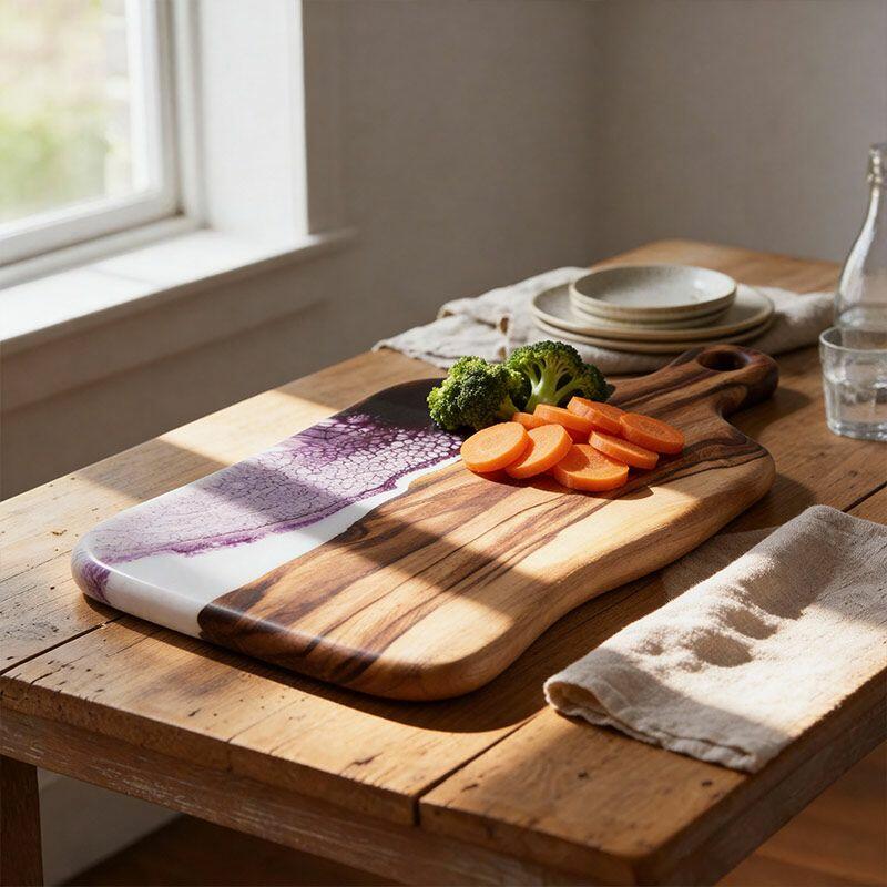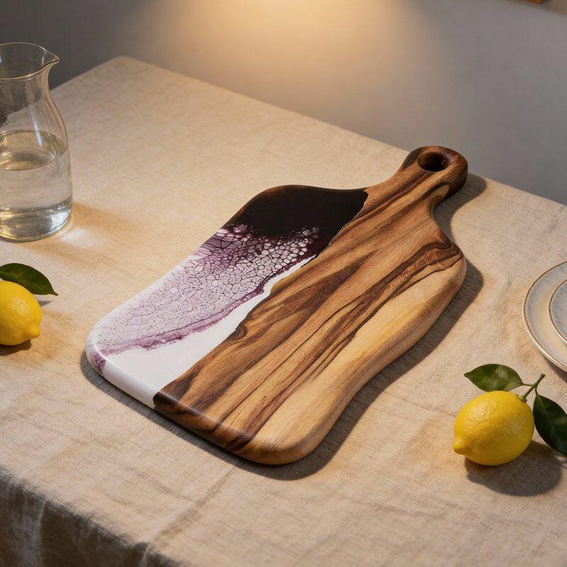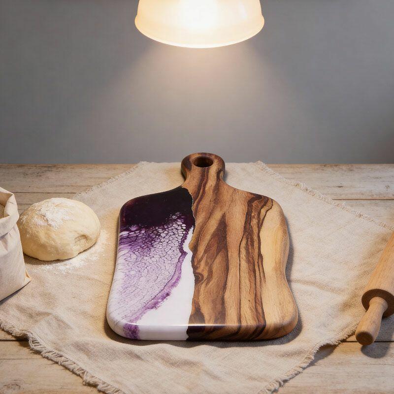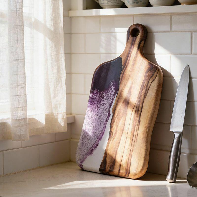 Artisan Resin Wood Fusion Cutting Board - Reslol Handcrafted Square with Handle