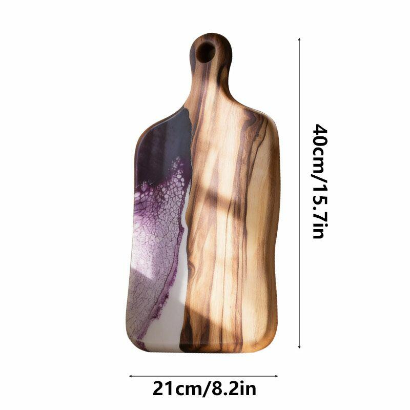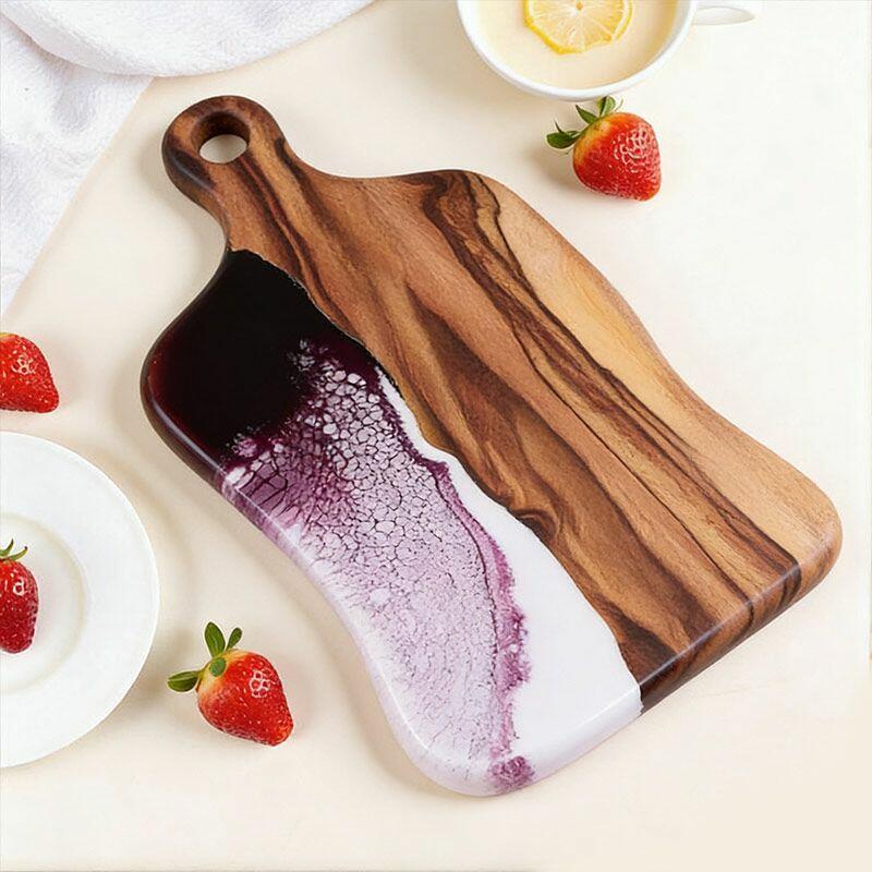 Reslol’s Handcrafted Resin Wood Inlay Chopping Board marries eco-friendly resin with reclaimed wood, creating a square kitchen essential with a functional handle. This artisan piece blends natural wood grains with smooth, glossy resin, resulting in a striking visual contrast that elevates both utility and decor.