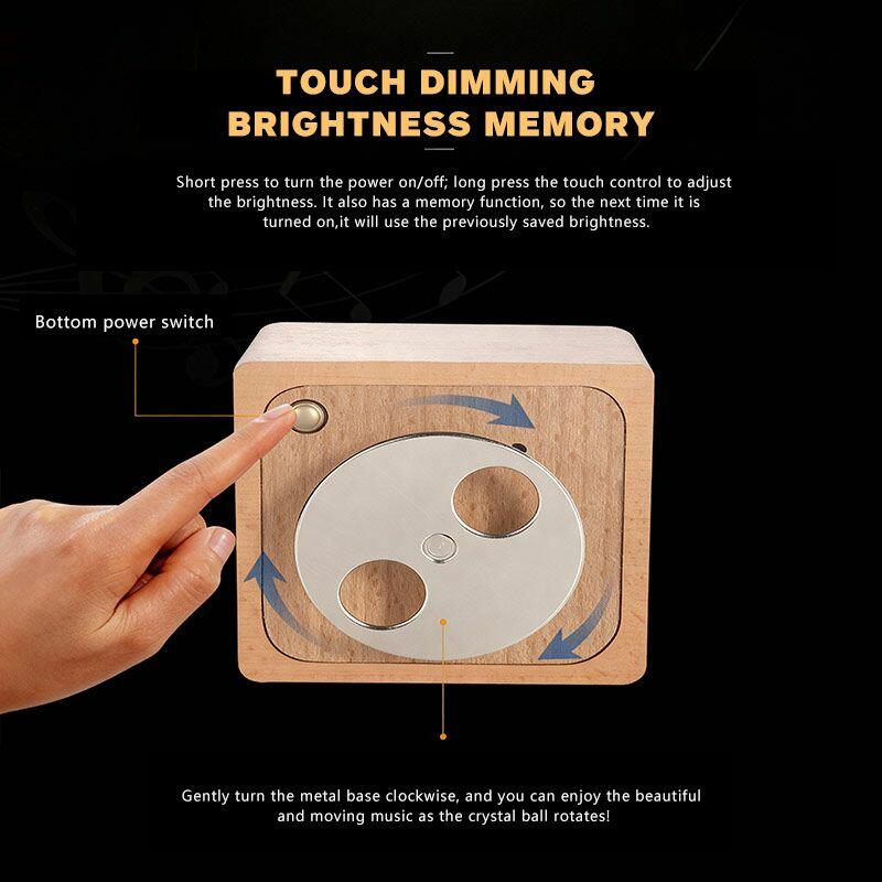 Designed for versatility, it doubles as a rotating music box: gently twist the metal base clockwise, and let the soft melody accompany the crystal ball’s slow spin, creating a mesmerizing ambiance. The built-in touch control adds convenience—short press to power on/off, long press to adjust brightness, with a memory function that retains your last setting for effortless use. This lamp is USB rechargeable and durable.