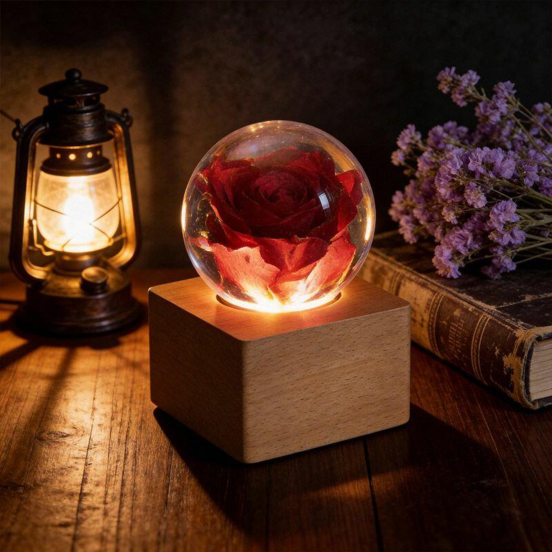 Elevate your gifting and decor with Reslol’s Artisanal Eternal Rose Resin Crystal Ball Lamp—a harmonious blend of craftsmanship and sentiment. Handcrafted with care, this spherical lamp features a preserved natural rose encased in clear resin, capturing nature’s fleeting beauty forever.
