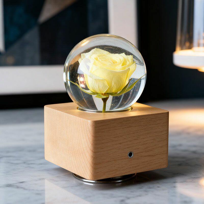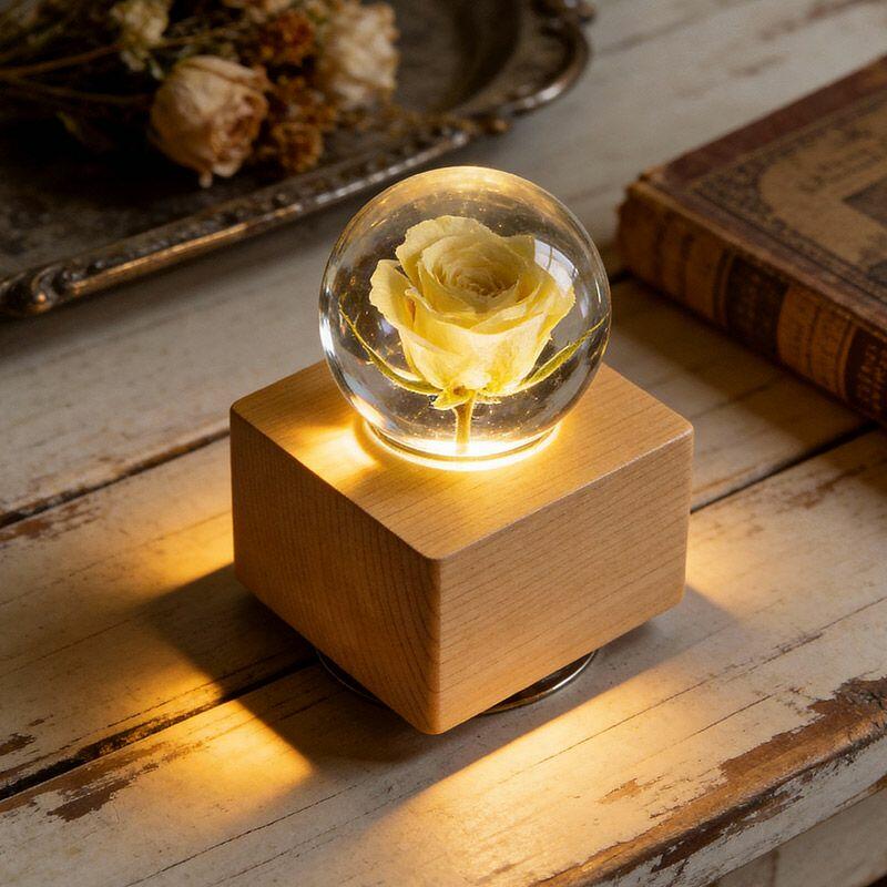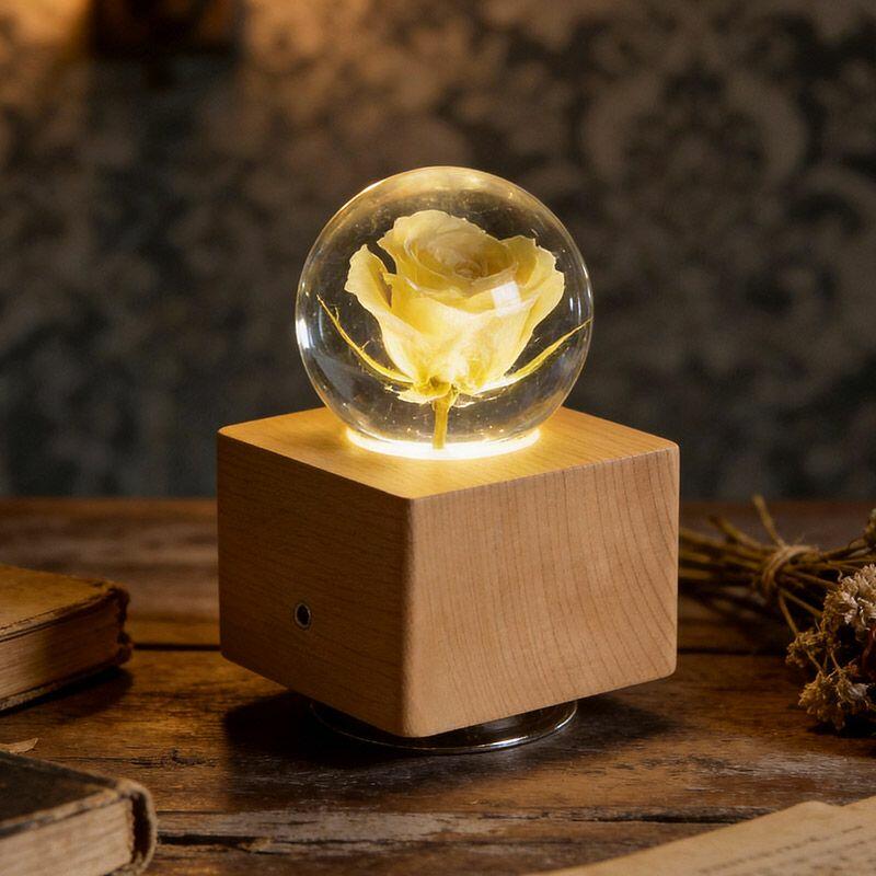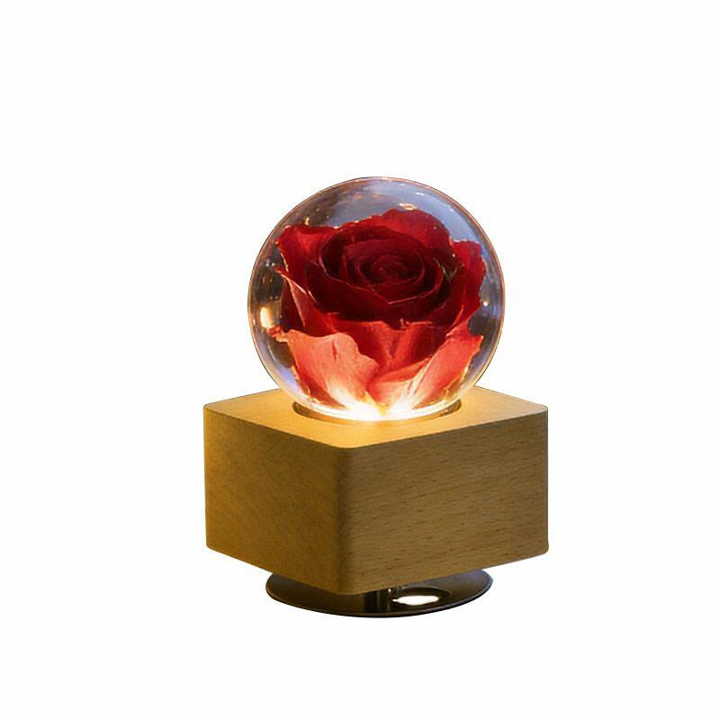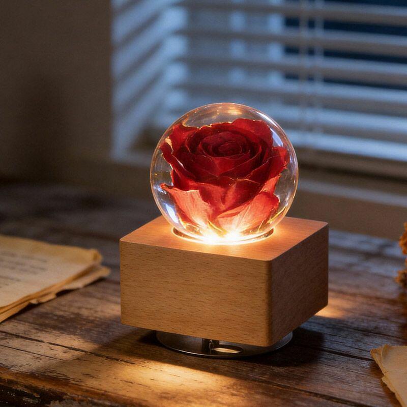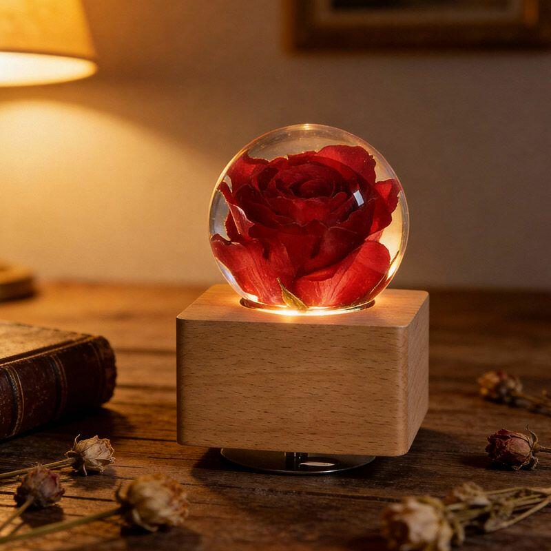 Artisanal Eternal Rose Resin Lamp - Rotating Music Box Lamp