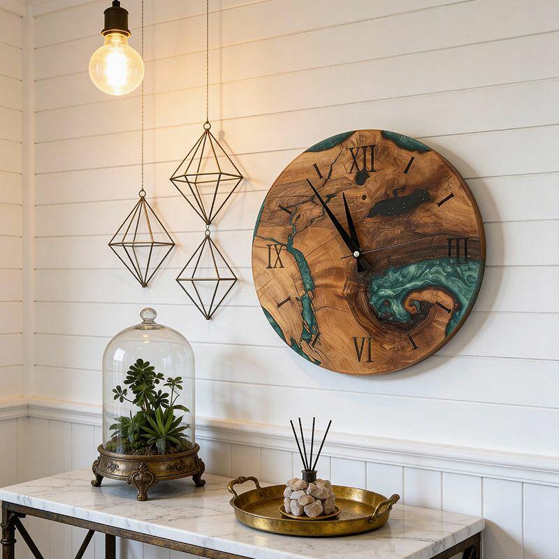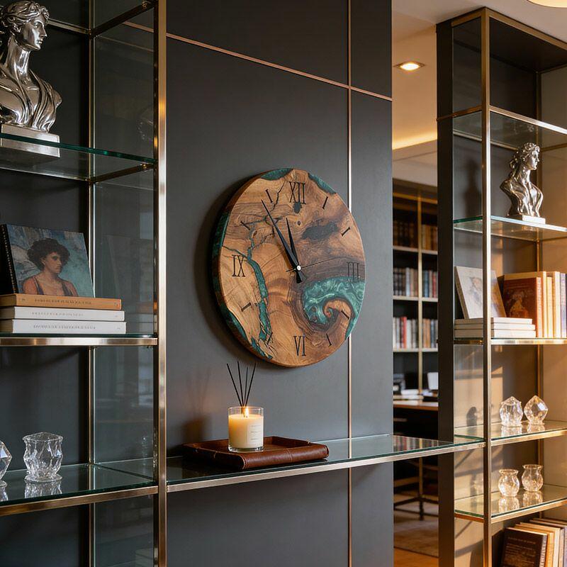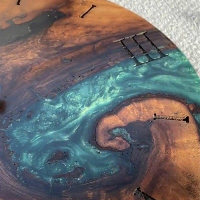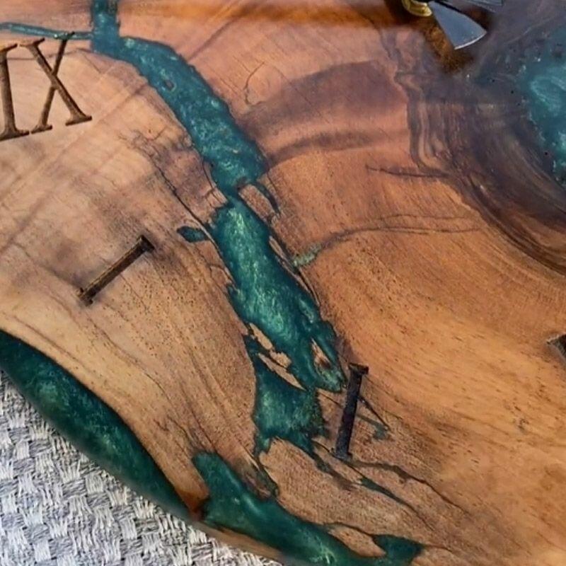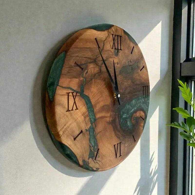Embrace the artisanal spirit with Reslol’s Green Epoxy Resin & Wood Wall Clock, a stunning fusion of natural wood and vibrant green epoxy. This round clock blends rustic warmth with modern minimalism, making it a captivating focal point for any home.