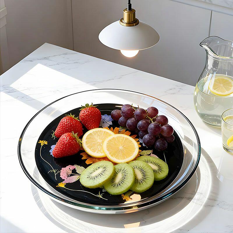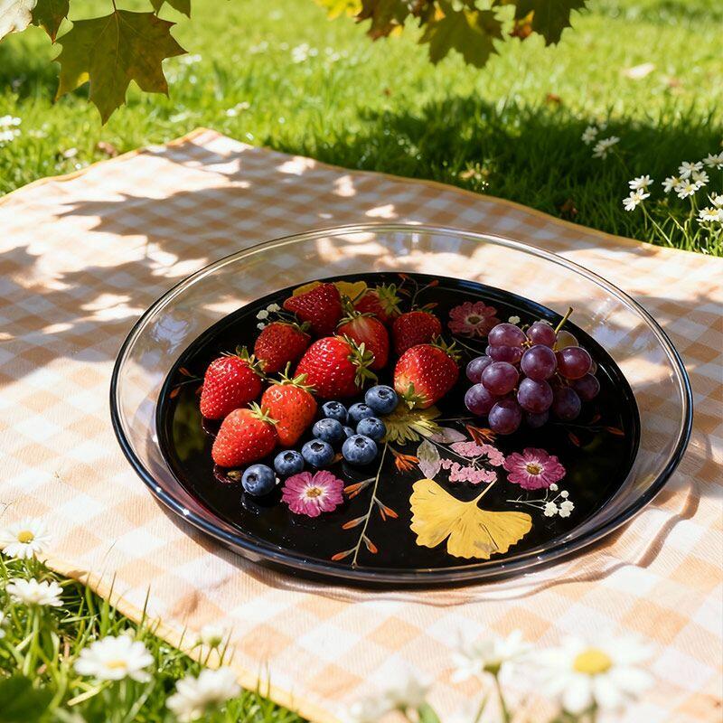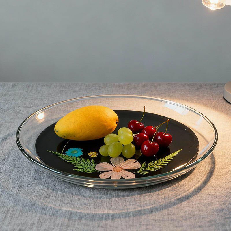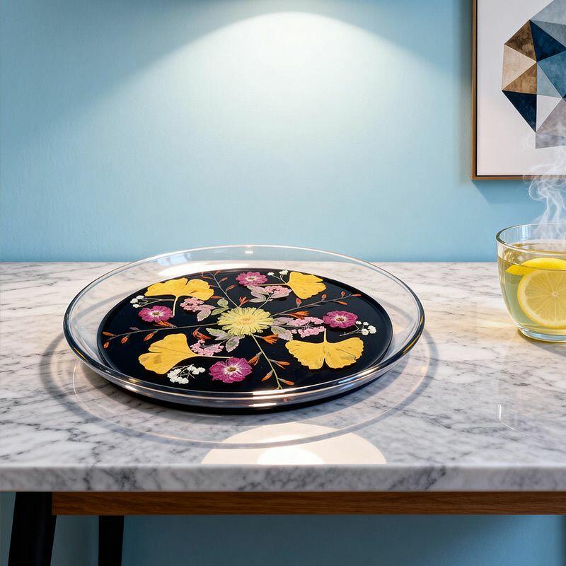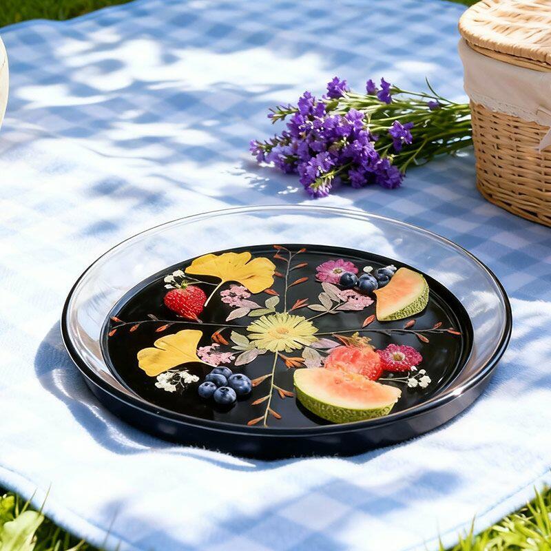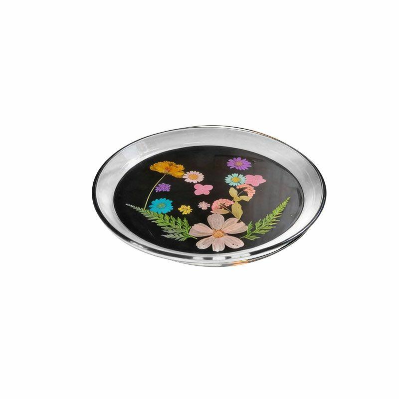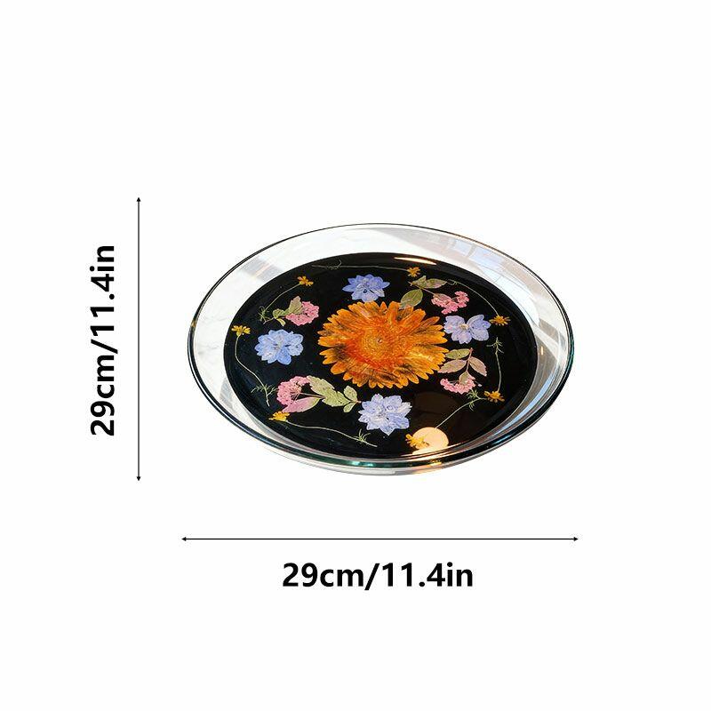 Handmade with care, this round resin tray features real pressed ginkgo leaves and delicate flowers suspended in crystal-clear resin, set on a sleek black base. The natural details are beautifully preserved, creating a "frozen in time" effect that adds organic charm to any space.