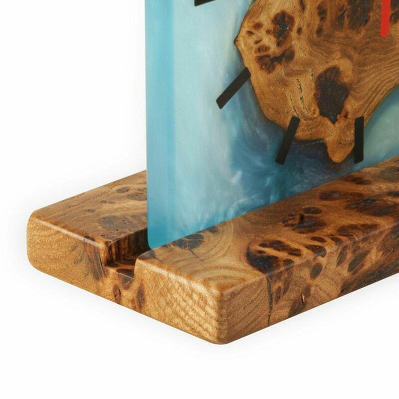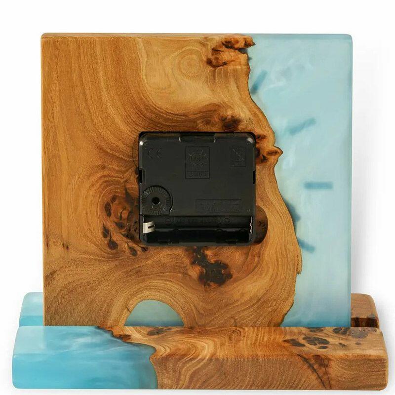 Handcrafted with meticulous attention to detail, the clock features a smooth resin surface that highlights the unique grain of recycled wood, creating a one-of-a-kind visual appeal. Its compact square shape fits seamlessly on desks, shelves, or mantels, adding a warm, artisanal touch to your space.