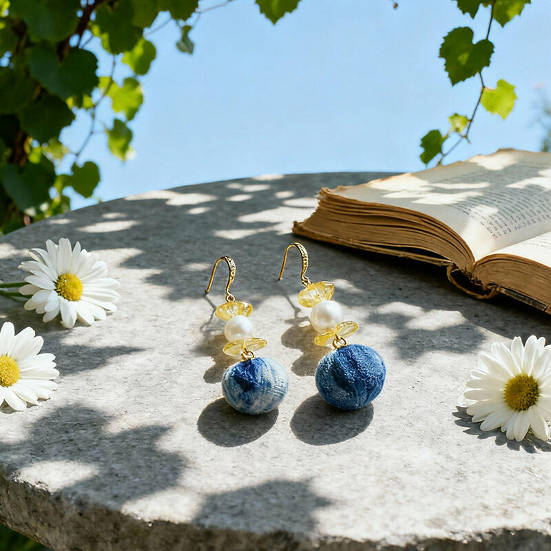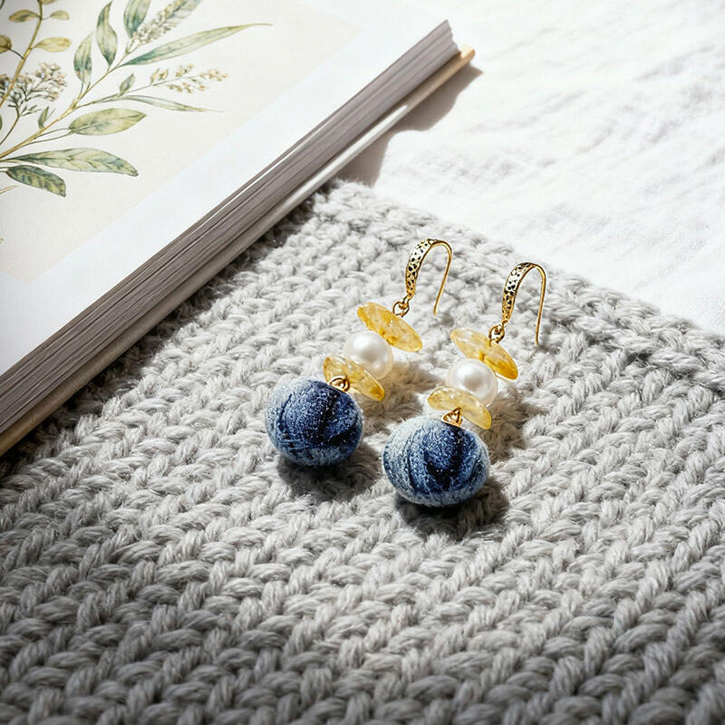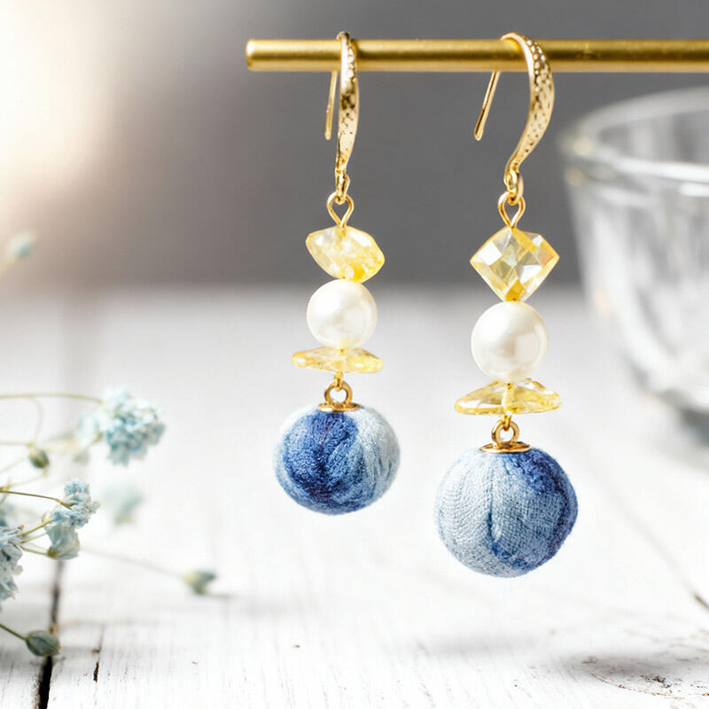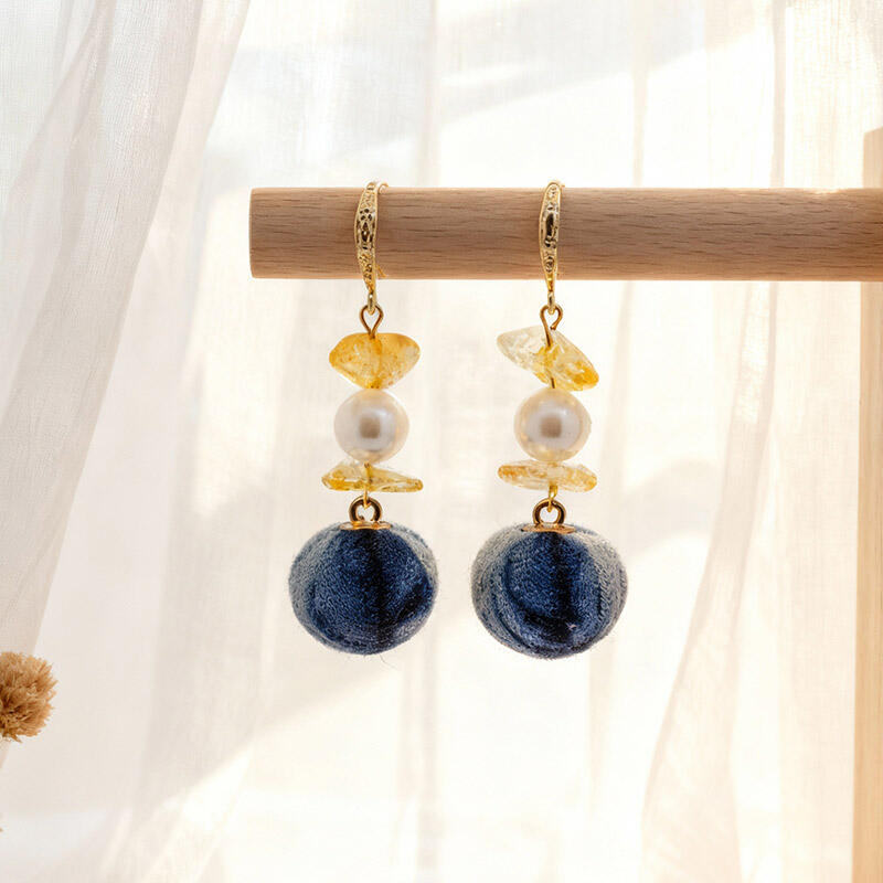 Artistic Handmade Pearl & Natural Stone Earrings – Irregular Tie-Dye Yellow Crystal Dangle Earrings
