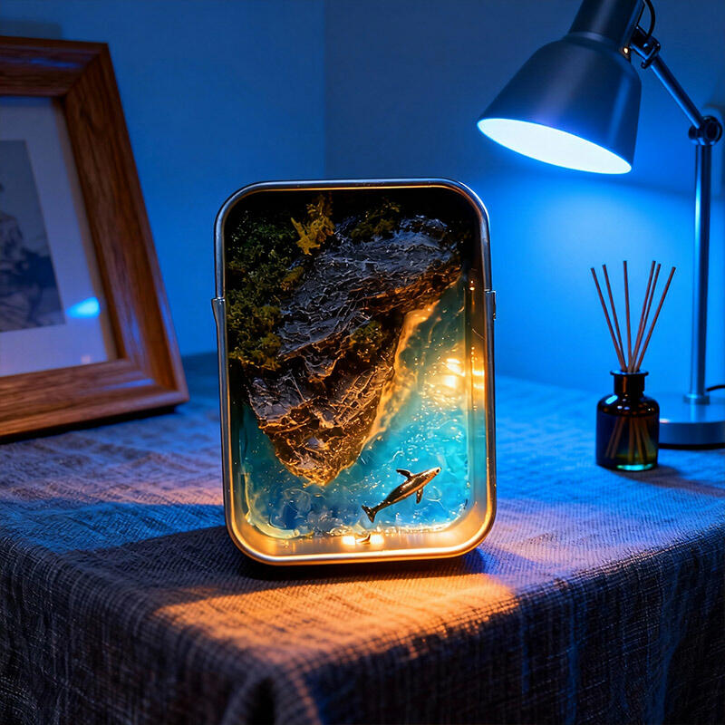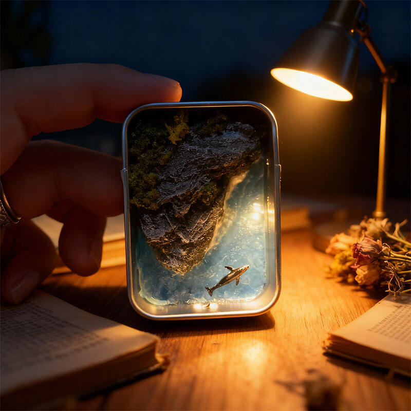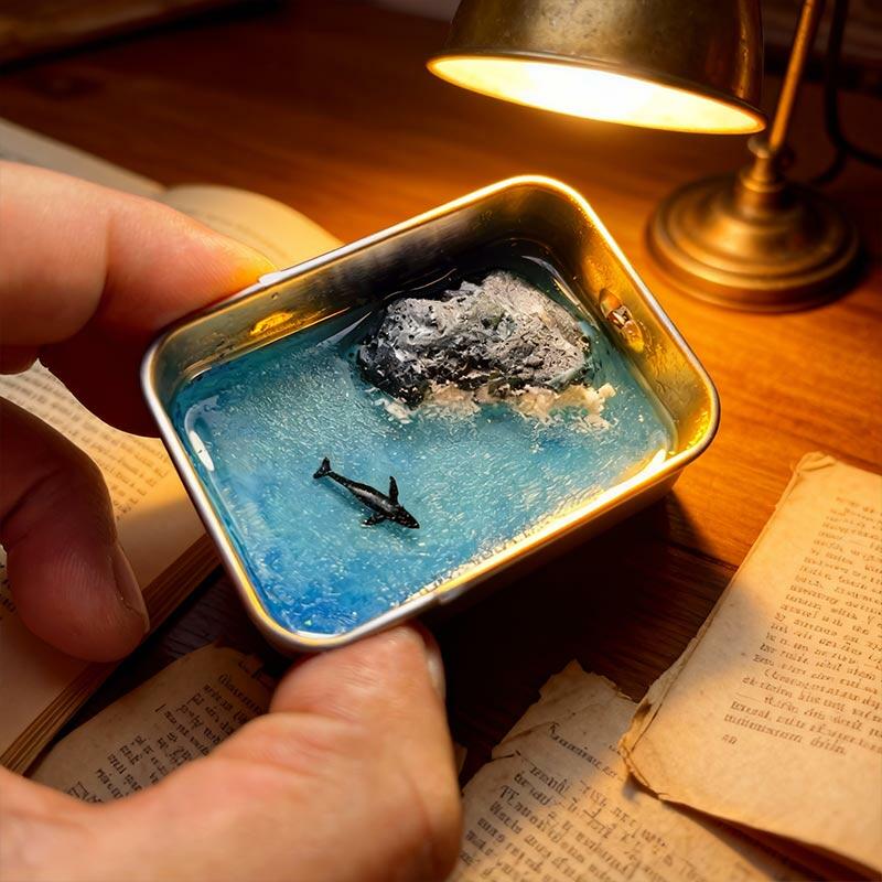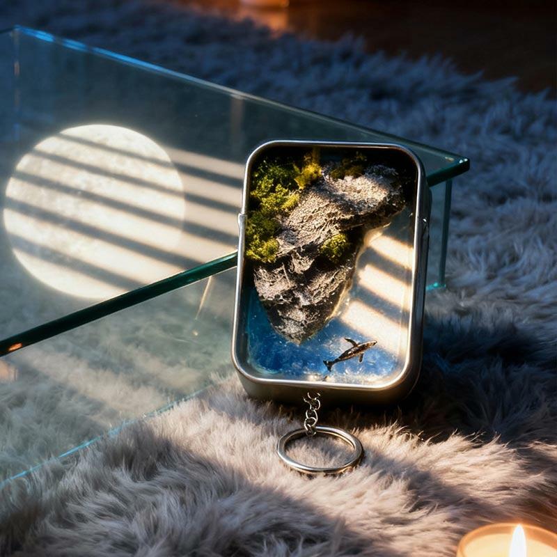 At its core is a meticulously handcrafted resin ocean scene, featuring delicate waves, tiny textured details that evoke the ocean’s depth, and a sleek metal box frame that adds a touch of industrial elegance. The keychain functionality makes it perfect for attaching to bags, keys, or displaying as a small decor piece on desks or shelves.
