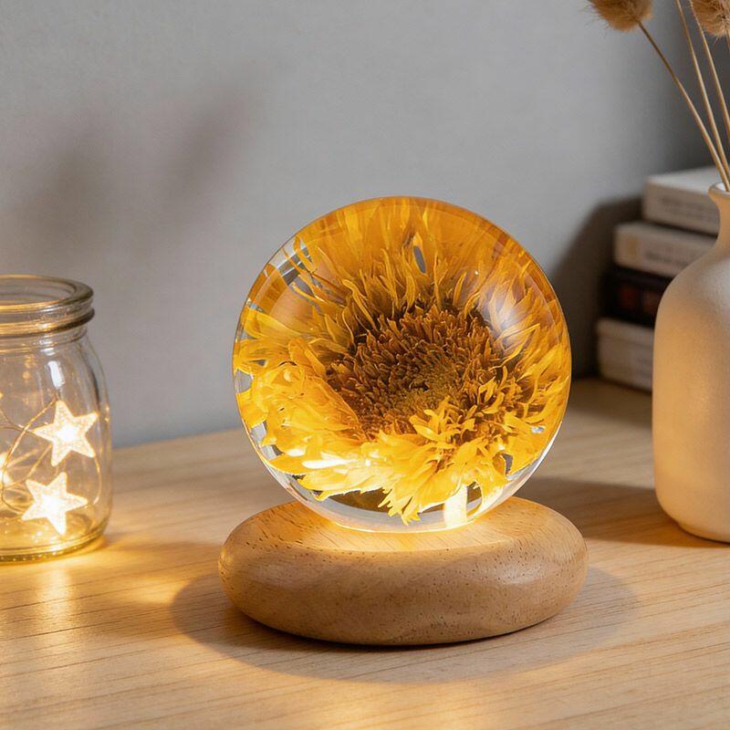 Brighten any space with the Reslol Sunflower Resin Night Light, a stunning handcrafted piece that blends eco-friendly resin with timeless floral beauty. Each lamp features a realistic sunflower encased in a crystal-clear resin sphere, creating a warm, ambient glow perfect for bedside tables, desks, or romantic decor.