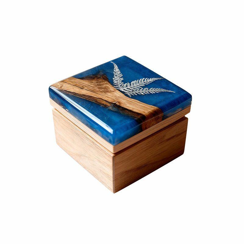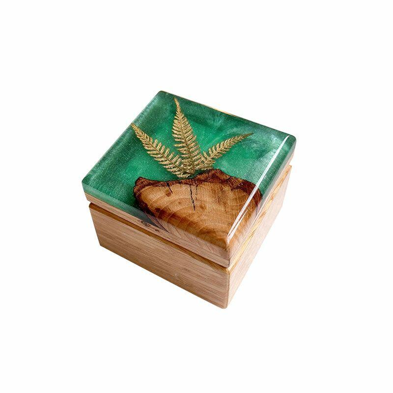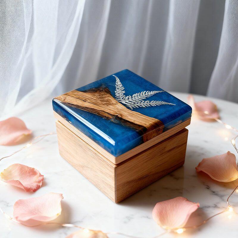 Our commitment to excellence means she’ll feel your care in every inch: premium materials ensure the resin stays clear and scratch-resistant, the wood retains its natural warmth, and the embedded fern remains vivid for years. Due to natural materials and handcrafting, each box has distinct fern details and color nuances—this is the beauty of owning a one-of-a-kind Reslol piece. Hand measurements may have slight discrepancies, but rest assured: all designs are original, with no infringement issues.
