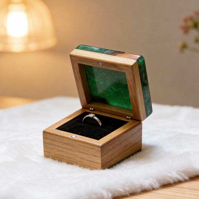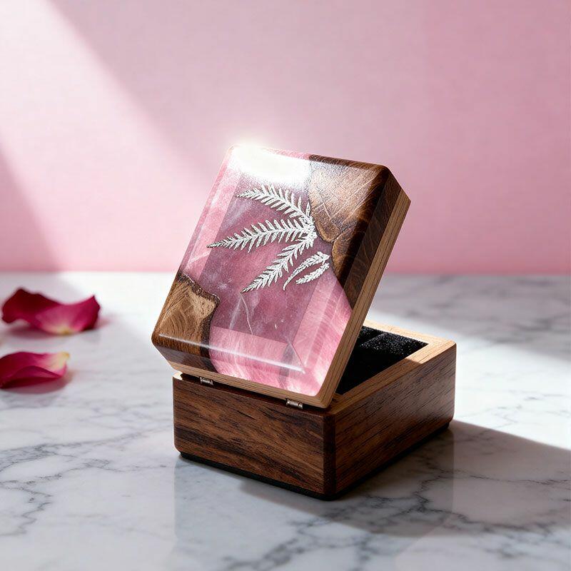 Elevate your love story with the Botanical Artisan Reslol Fern-Embedded Resin & Wood Square Ring Box—a high-quality treasure where nature meets artisanal skill. Shaped by master craftsmen, this square box marries the earthy warmth of wood with the glossy luminosity of premium resin, featuring a lifelike fern inlay that captures the beauty of the outdoors. It’s not just a ring holder; it’s a decorative art piece for her vanity, a keepsake that turns “everyday” into “memorable.”