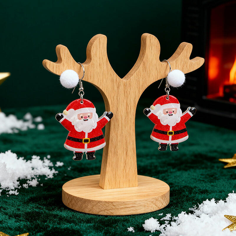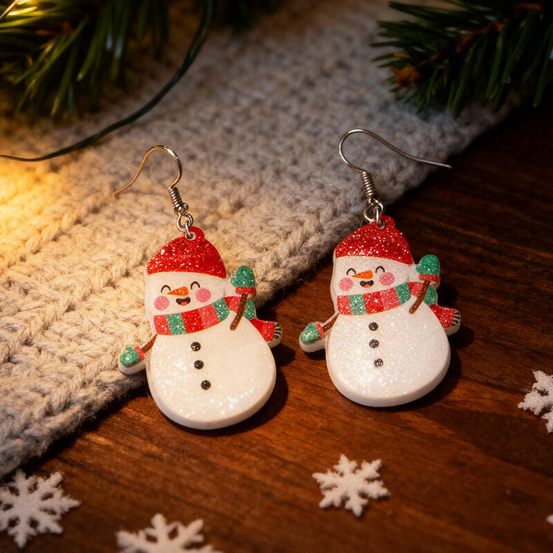 The Santa design on the earring represents the generosity and merriment of Christmas. The snowman, with its friendly and cute appearance, evokes the joy of winter days.