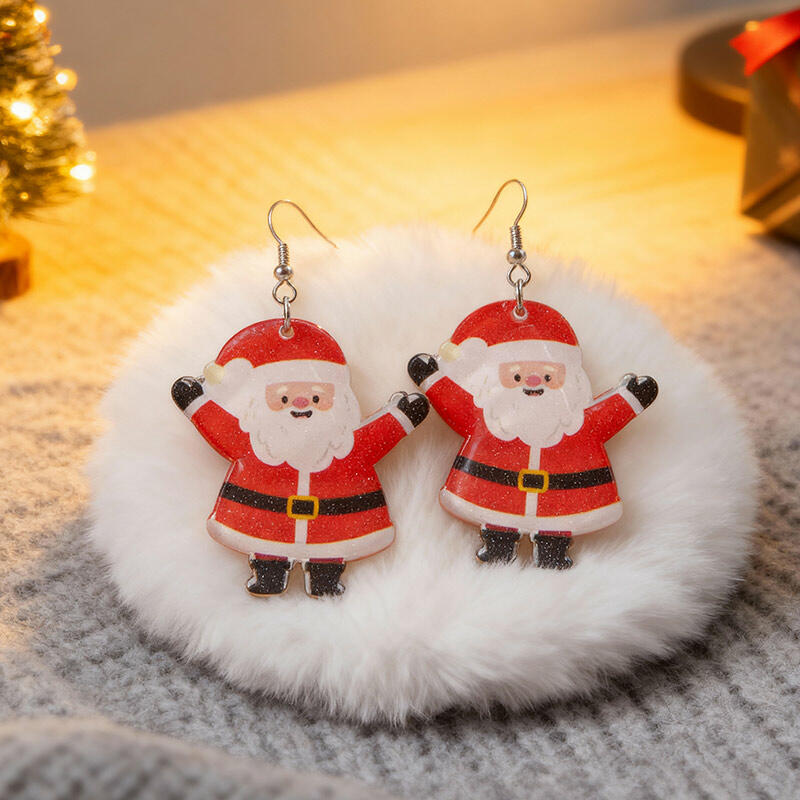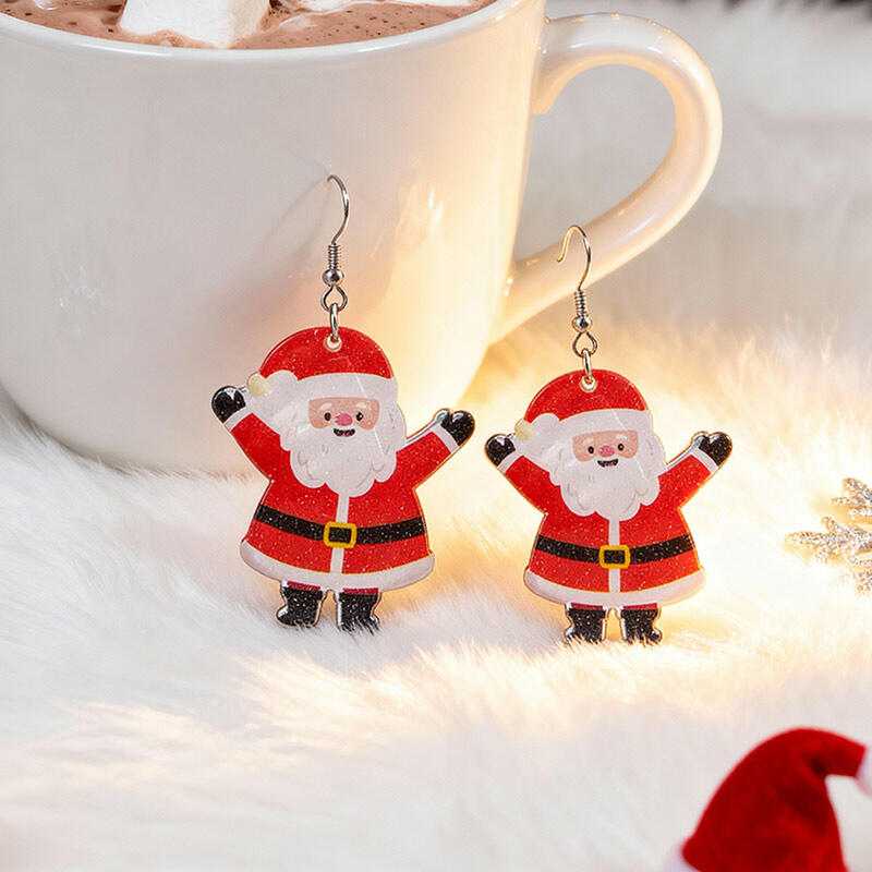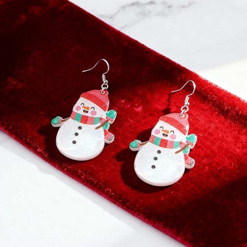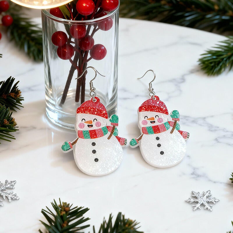 Charming Christmas Resin Earrings with Santa & Snowman for Ladies