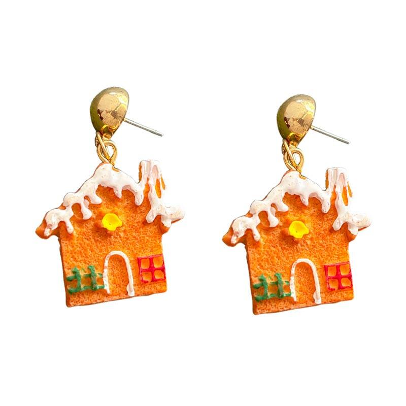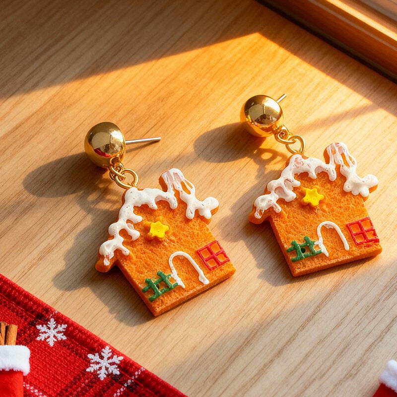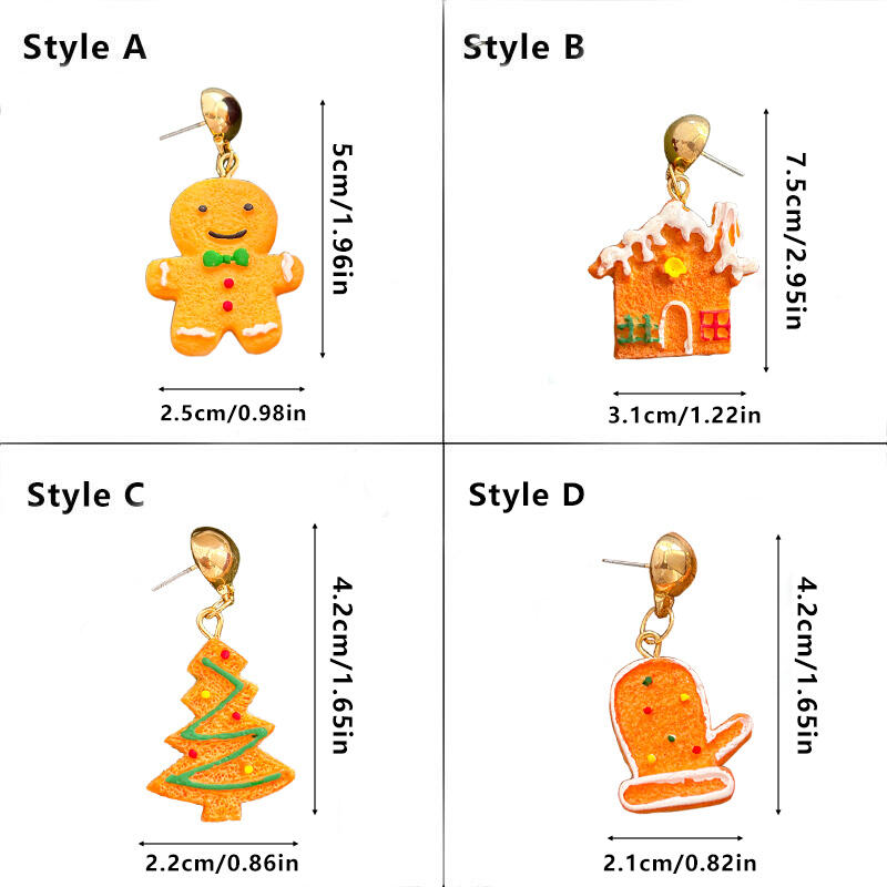 Charming Christmas - Themed Resin Earrings with Snowman, House, Tree & Gloves