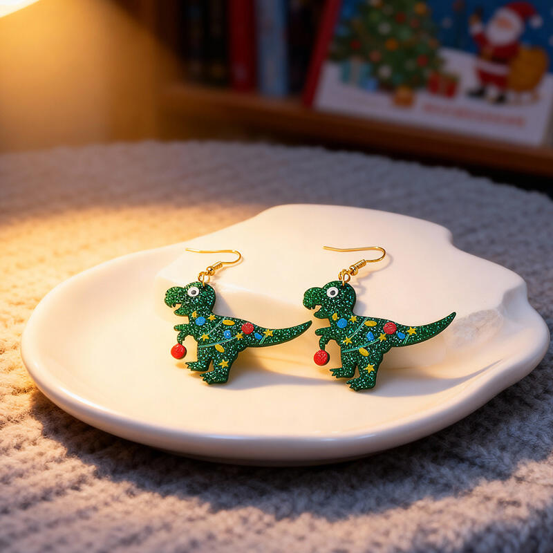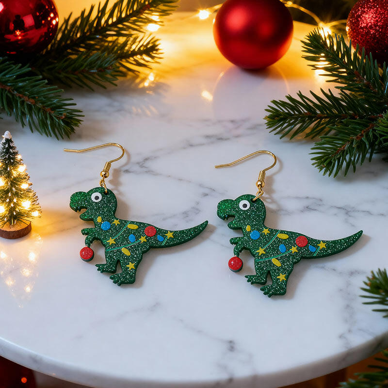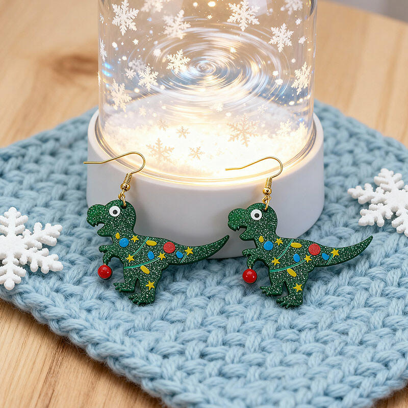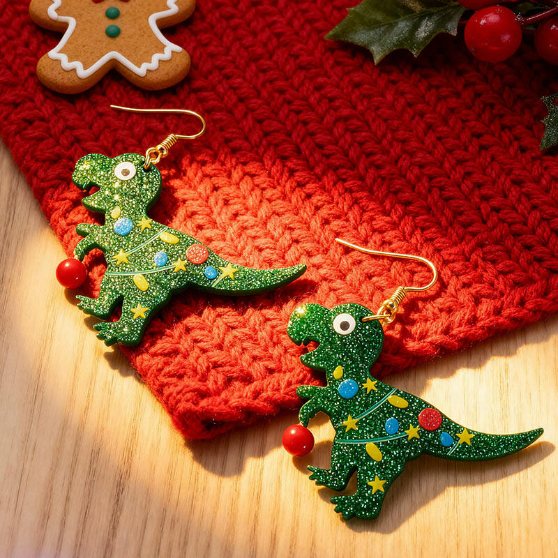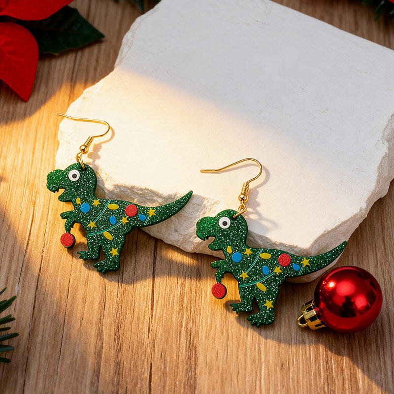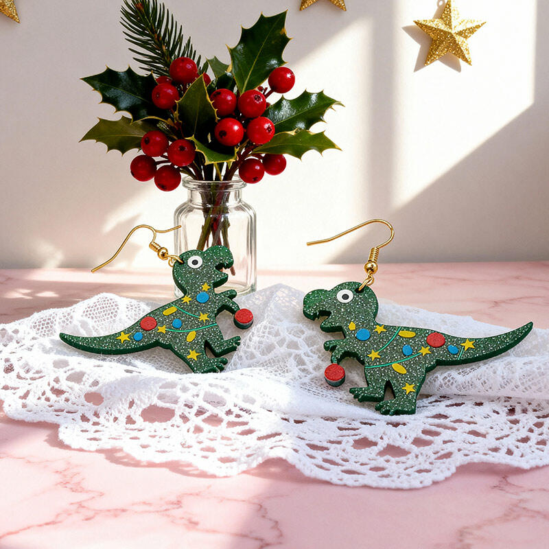 Christmas - Inspired Cute Dinosaur Resin Earrings for Women