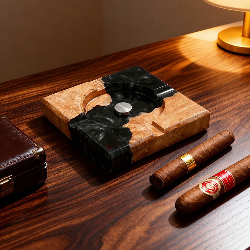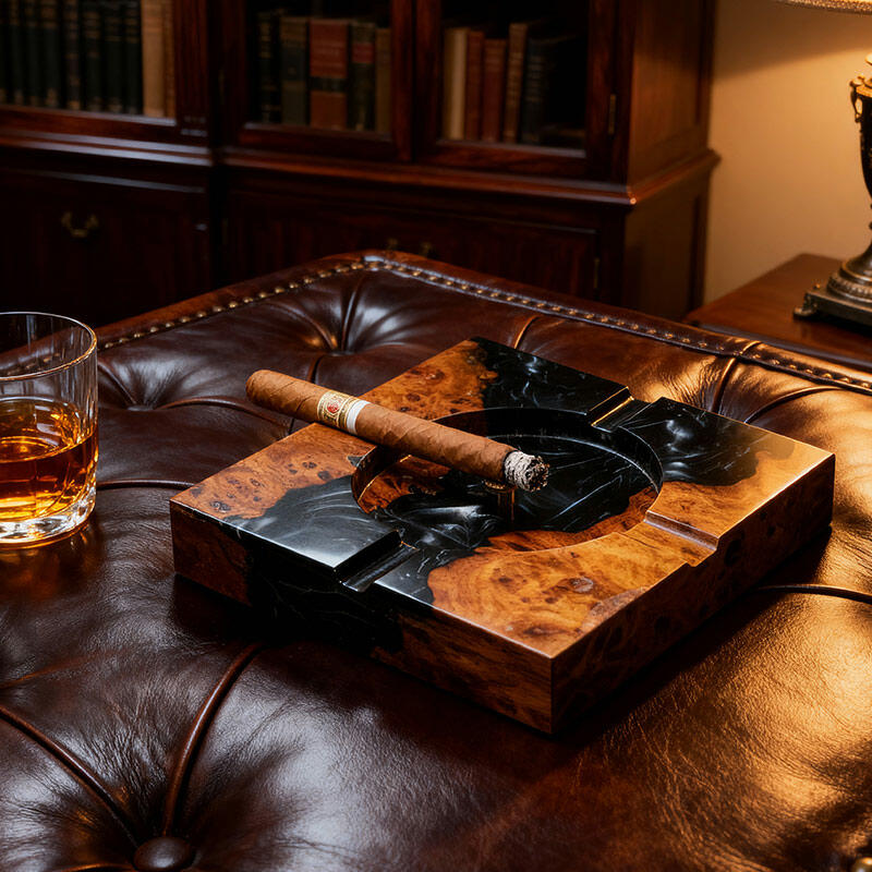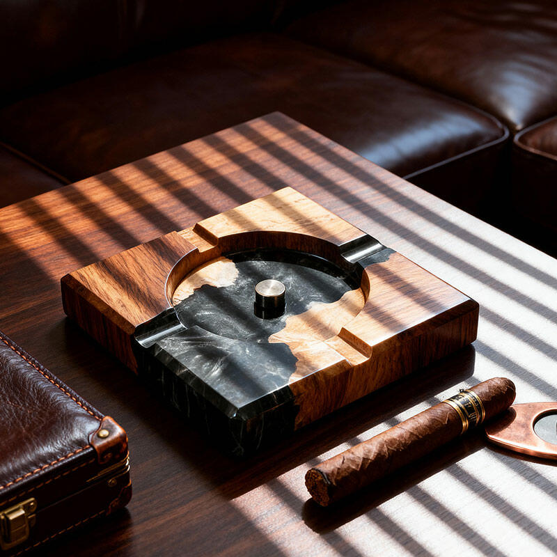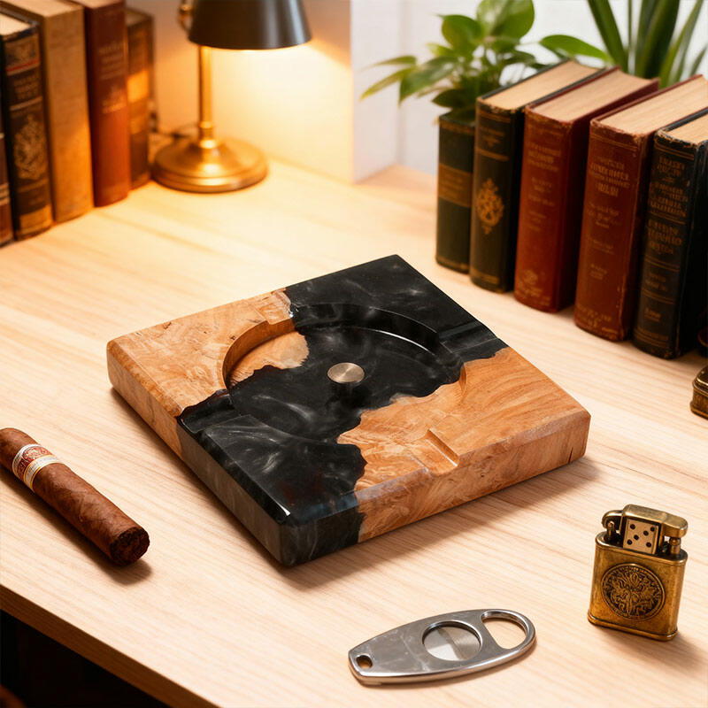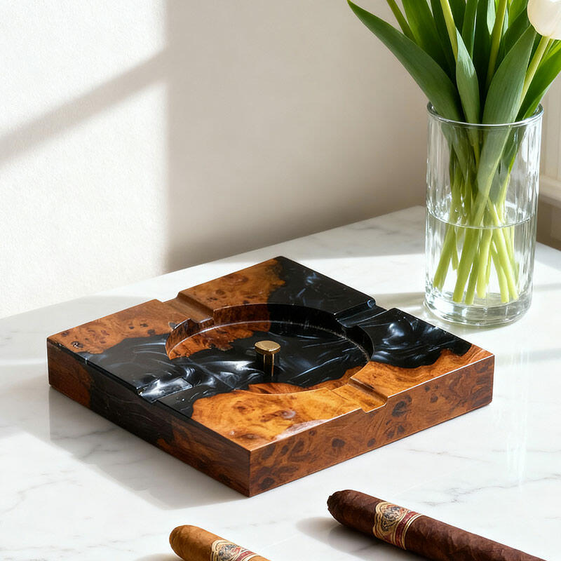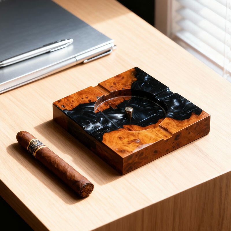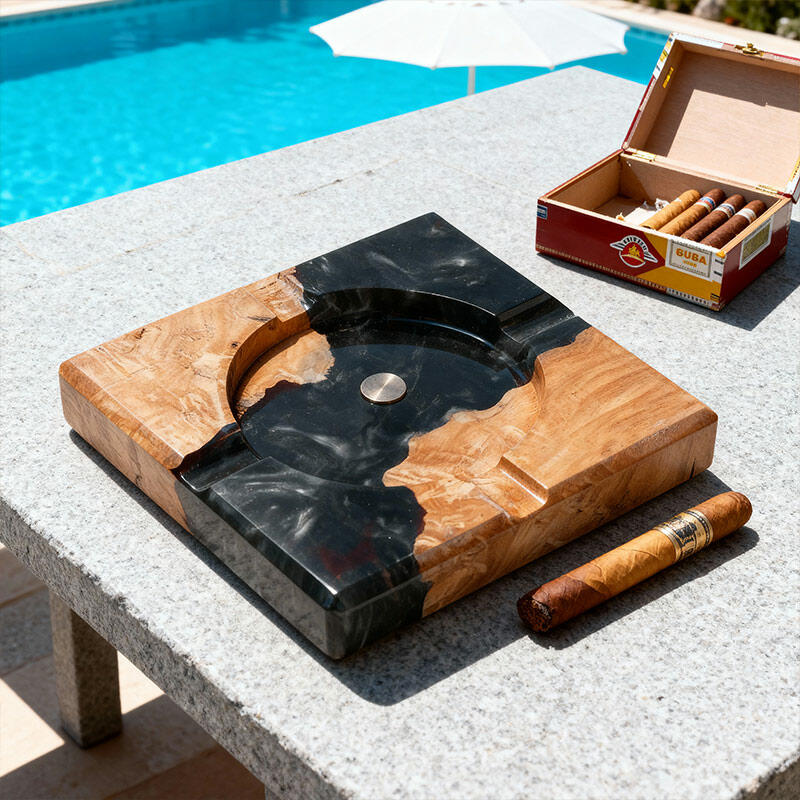 Elevate your space with the Reslol Eco - Artisanal Resin Wood Ashtray, a masterpiece of sustainability and craftsmanship. Blending recycled wood with eco-friendly resin, this handmade ashtray is perfect for tobacco and cigar lovers.