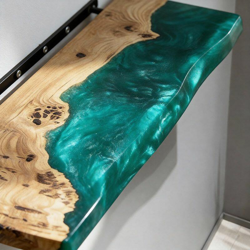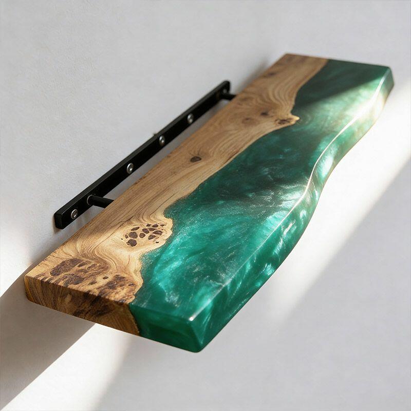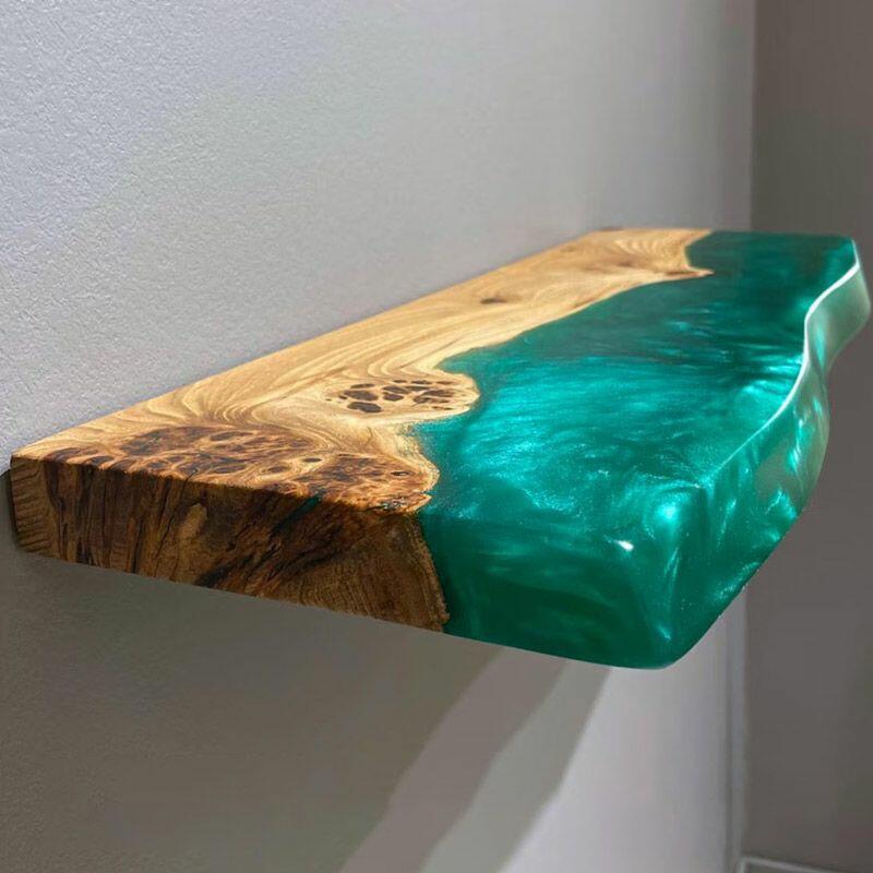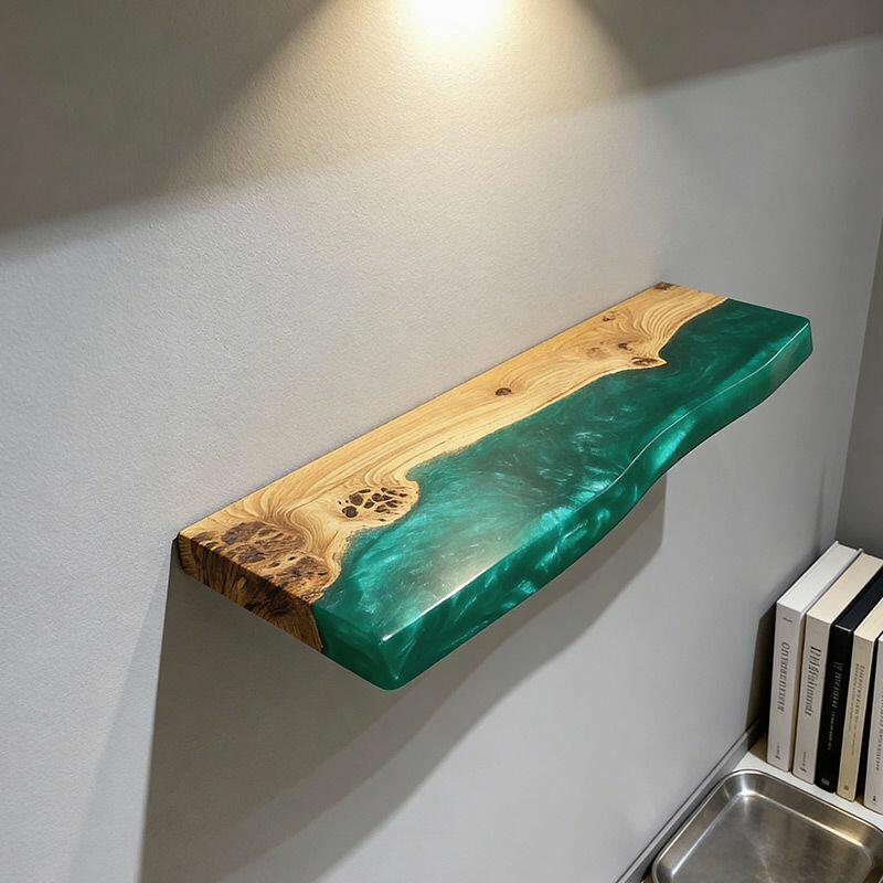Eco-Craft Green Resin & Wood Live Edge Floating Shelf by Reslol