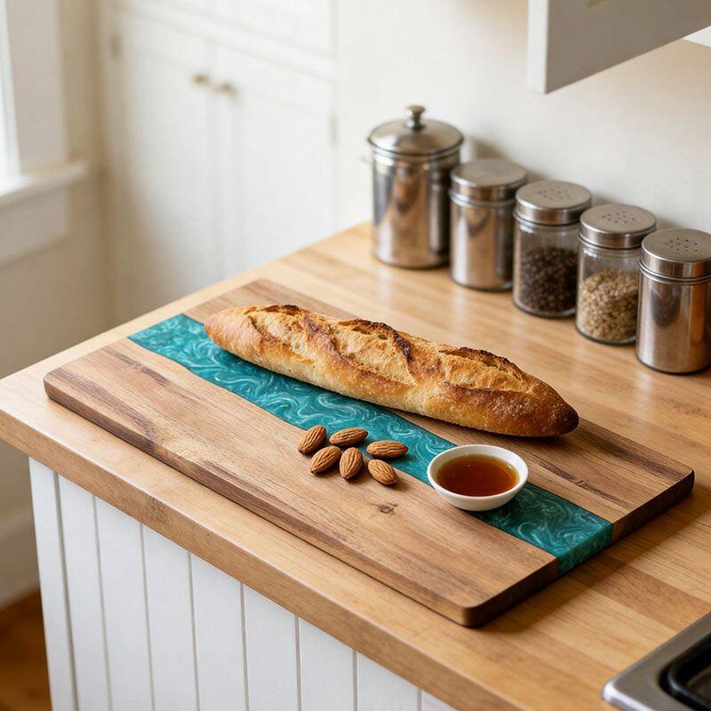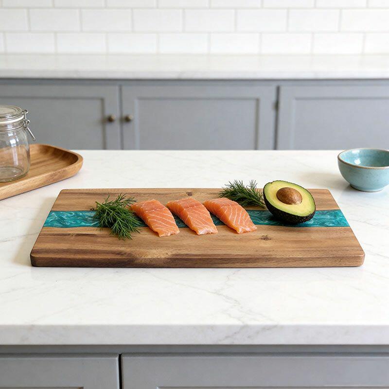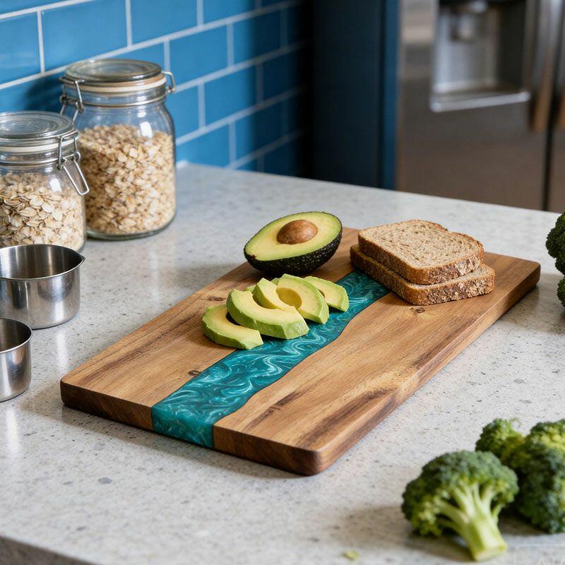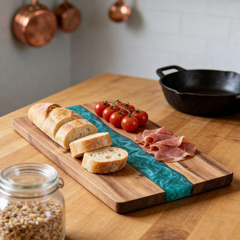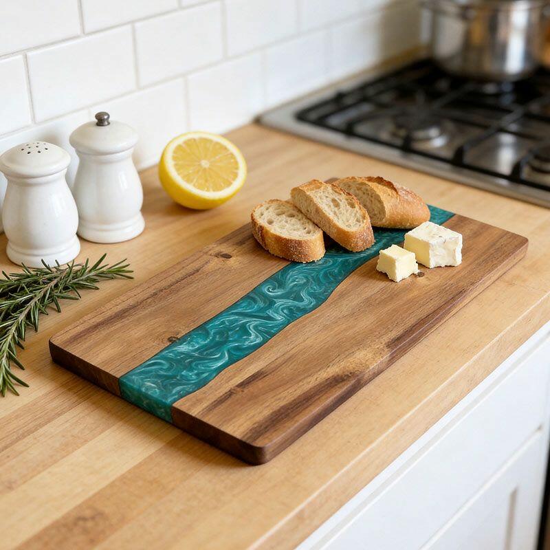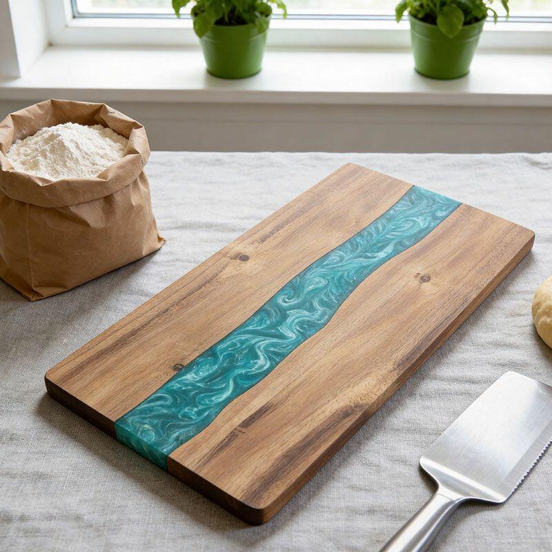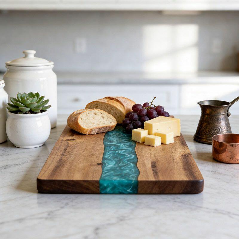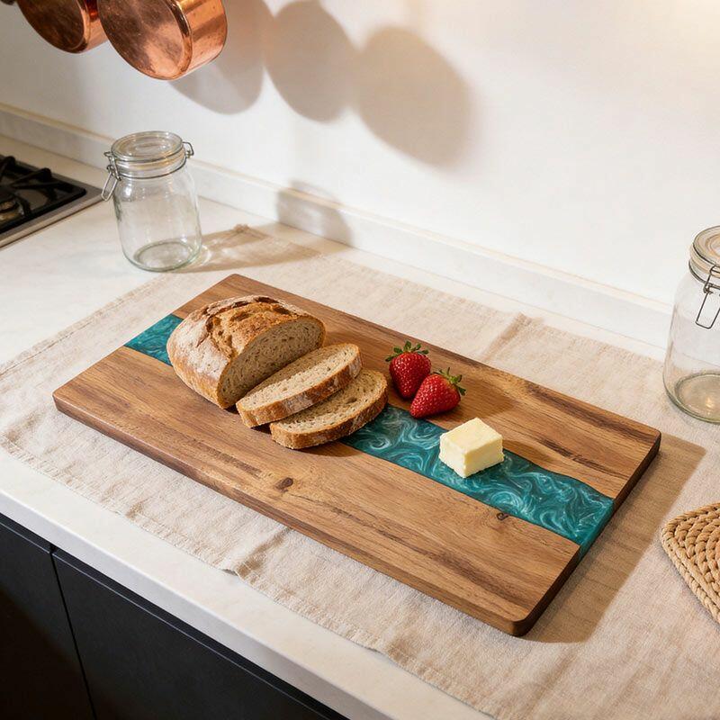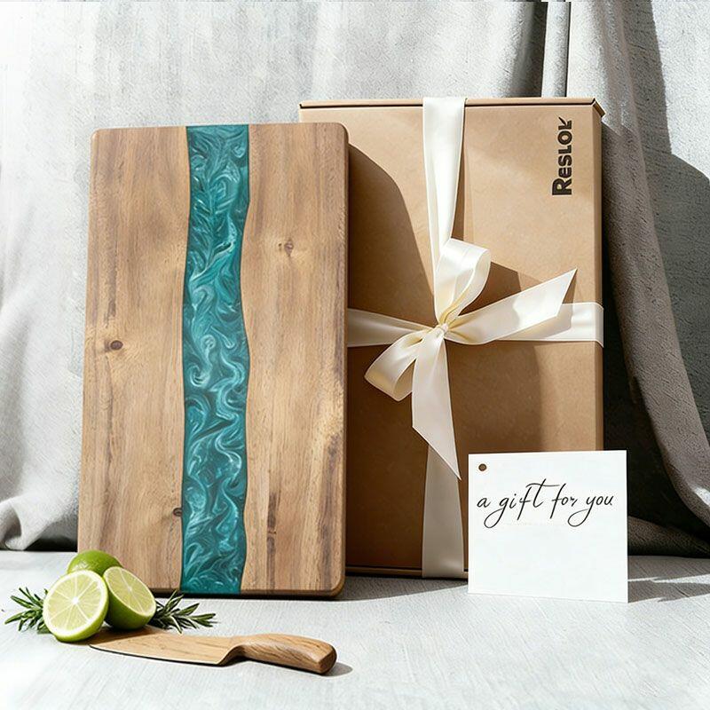 Perfect for home chefs, eco-enthusiasts, or as a thoughtful gift for friends and family, this cutting board marries practicality with artistic flair. Note: Due to natural materials and handcrafting, slight variations in wood grain, resin color, and measurements may occur—making every piece one-of-a-kind. All Reslol designs are original, ensuring no infringement issues.