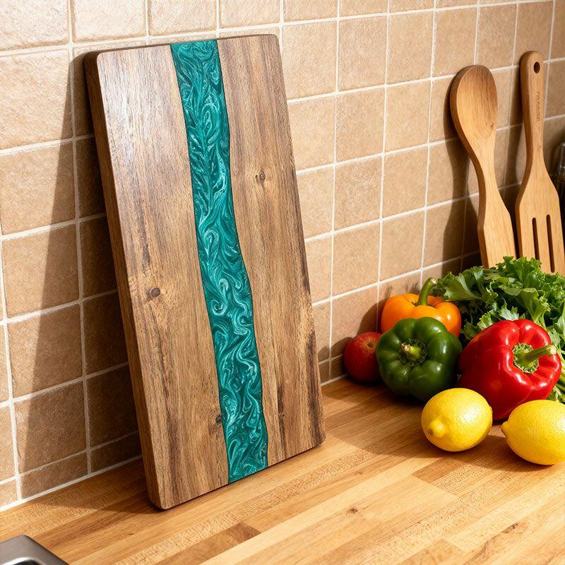 Elevate your kitchen with Reslol’s Handcrafted Green Resin & Wood Inlay Rectangle Cutting Board—where eco-conscious artistry meets daily functionality. This unique piece blends natural reclaimed wood with vibrant green resin, creating a striking visual contrast that turns meal prep into a creative experience.