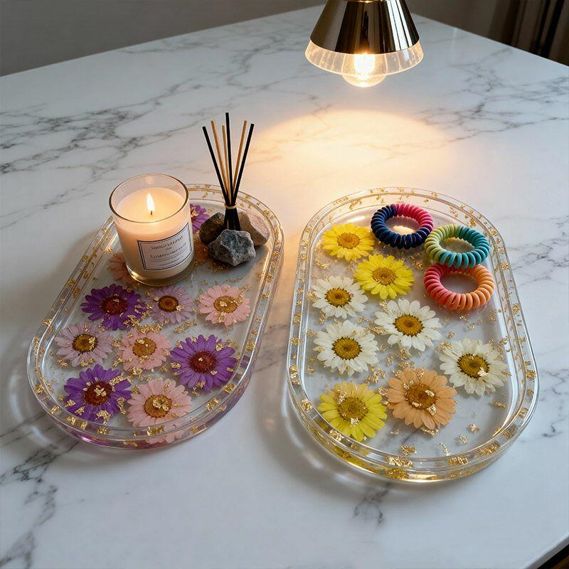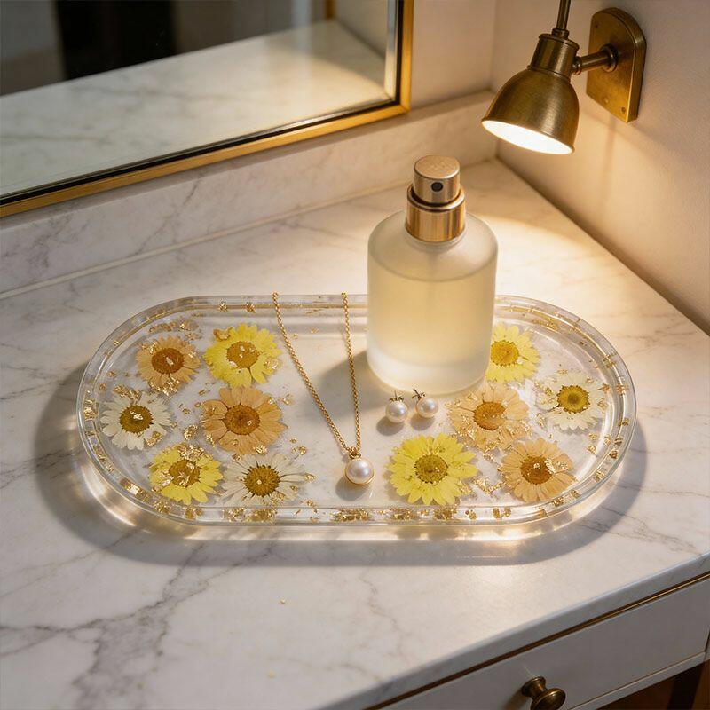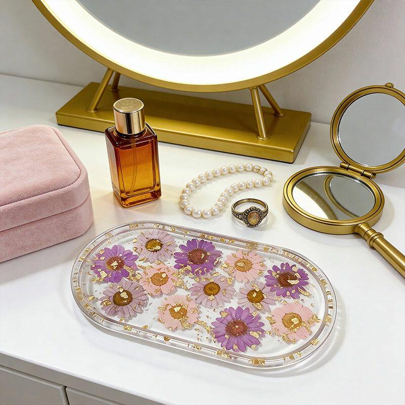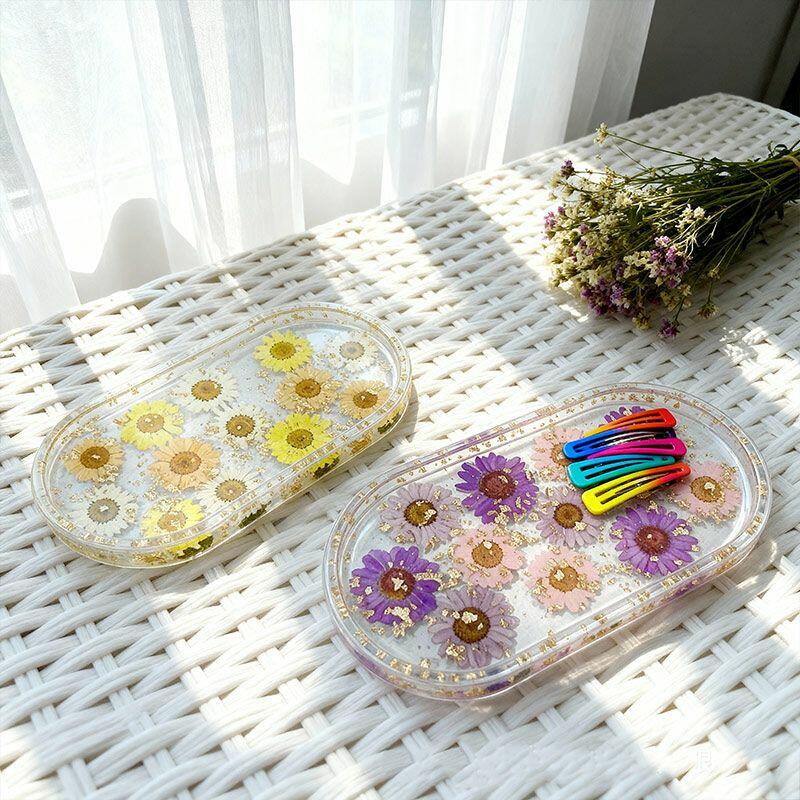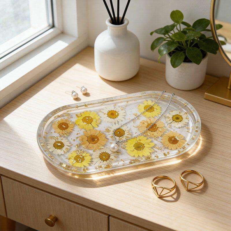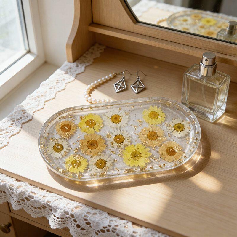 Elegant Daisy Resin Jewelry Tray – Floral Handcrafted Stunning Gift