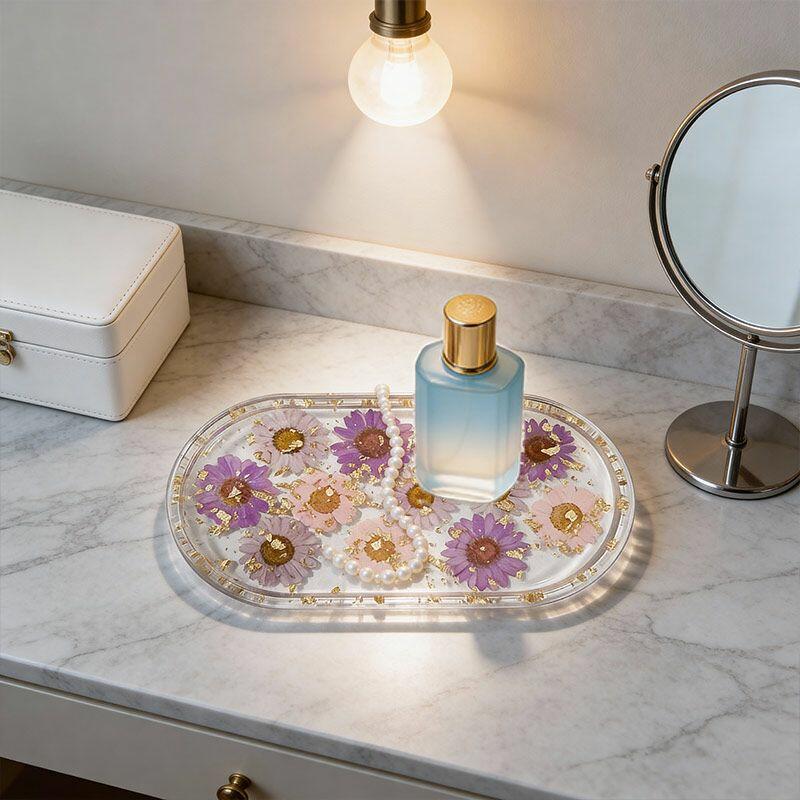 Available in soft purple and sunny yellow, this tray complements any vanity, dresser, or nightstand. Its lightweight yet durable design ensures long-lasting beauty.