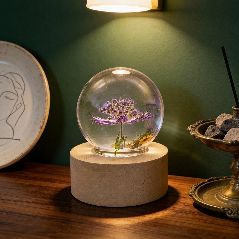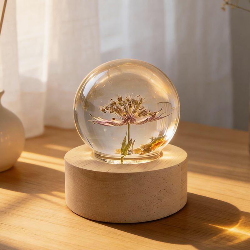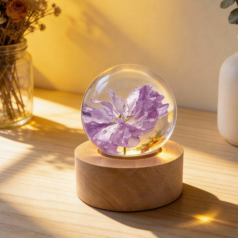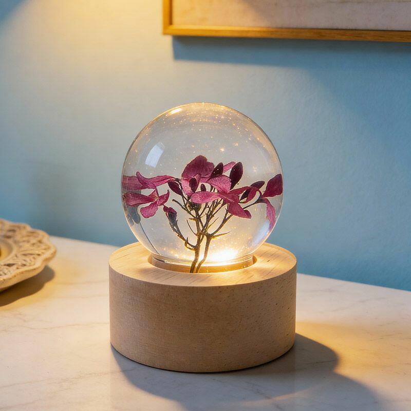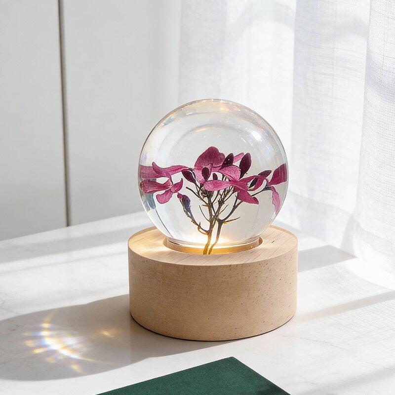 Choose from five enchanting designs – Rose, Cherry Blossom, Coral Plant, Dandelion, and Starflower – each encased in a smooth crystal-like resin sphere. The warm, adjustable glow creates a soothing ambiance, perfect for bedside tables, living rooms, or as a heartfelt gift.