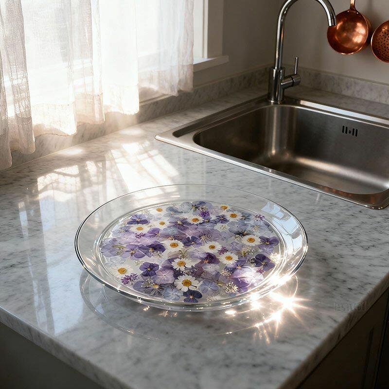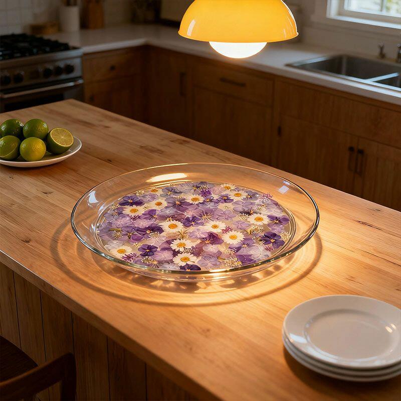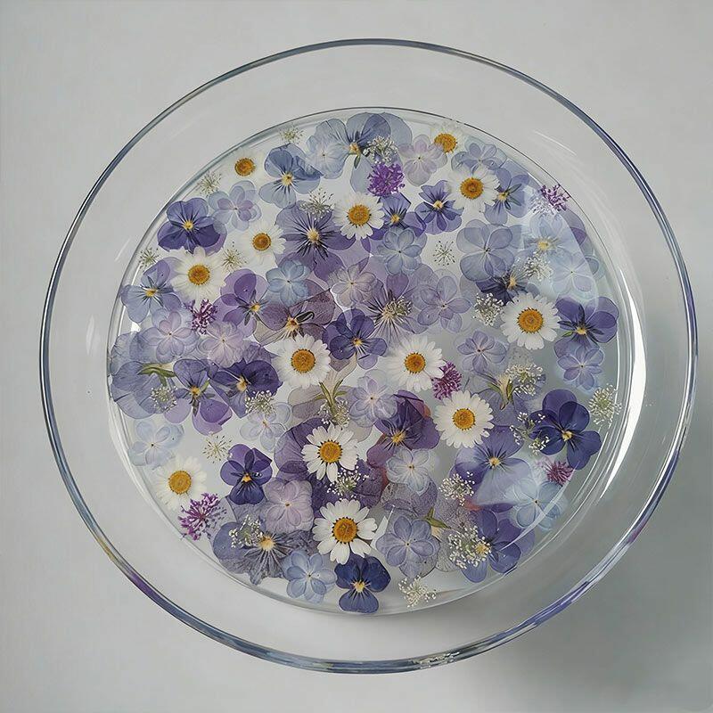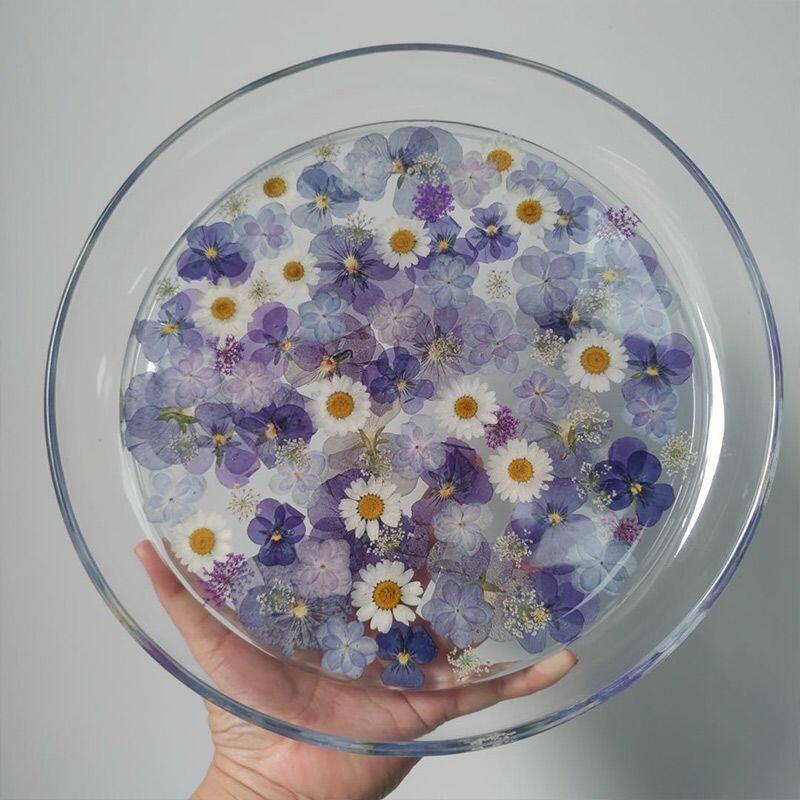 Elevate your space with the Reslol Floral Resin Tray, a stunning fusion of eco-friendly resin and reclaimed wood accents. Each tray is meticulously hand-poured, encasing delicate purple floral designs within a smooth, glossy finish. The circular shape offers a versatile touch, perfect for serving snacks, displaying jewelry, or simply adding a sophisticated decorative accent to any room.