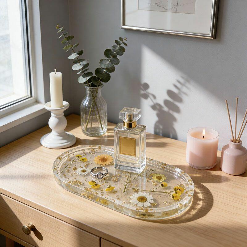 Ideal as a thoughtful gift for loved ones who appreciate artisan craftsmanship and sustainable decor. Due to the handmade nature of this product, slight variations in flower placement and resin texture may occur, making each tray truly one-of-a-kind.