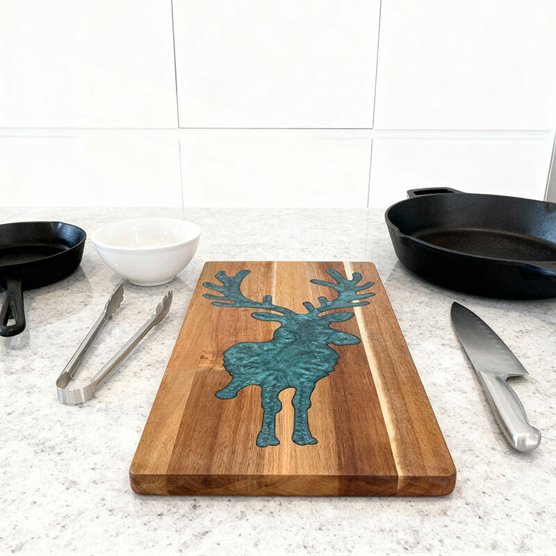Elk Resin Cutting Board – Nature-Inspired Handmade Kitchen Gift, Eco-Friendly