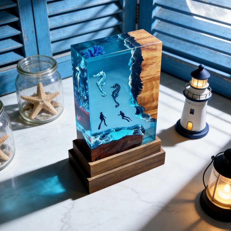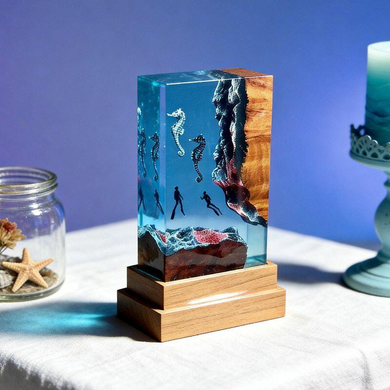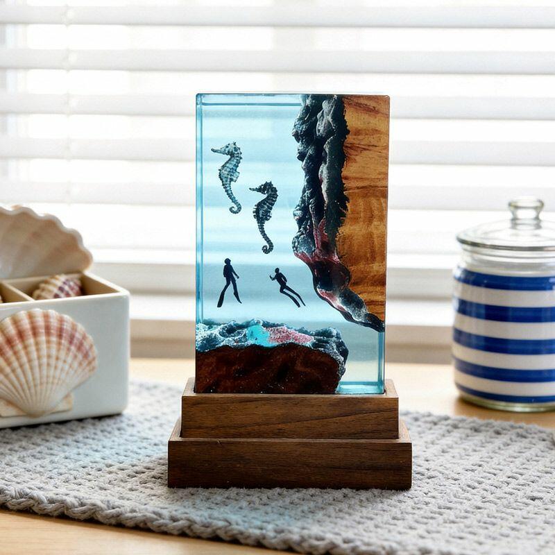 Whether you’re decorating your home or searching for a meaningful gift, this seahorse-diver resin lamp is ideal for ocean lovers, nature enthusiasts, or anyone who appreciates unique handcrafted decor. It’s more than a lamp—it’s a story of the sea, told through resin and wood.
