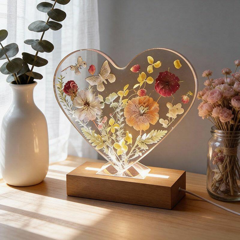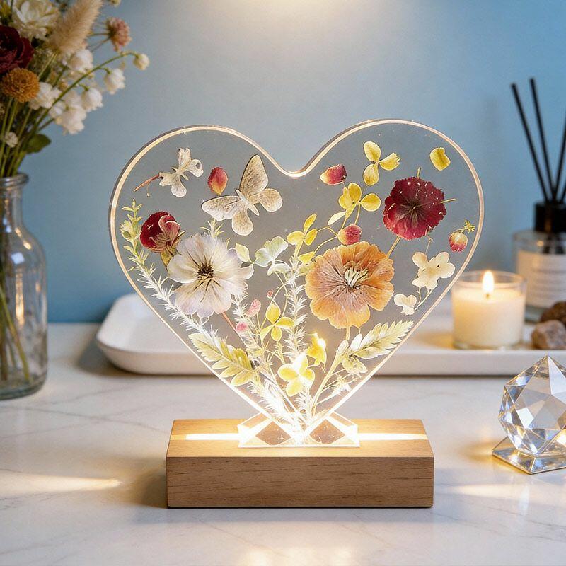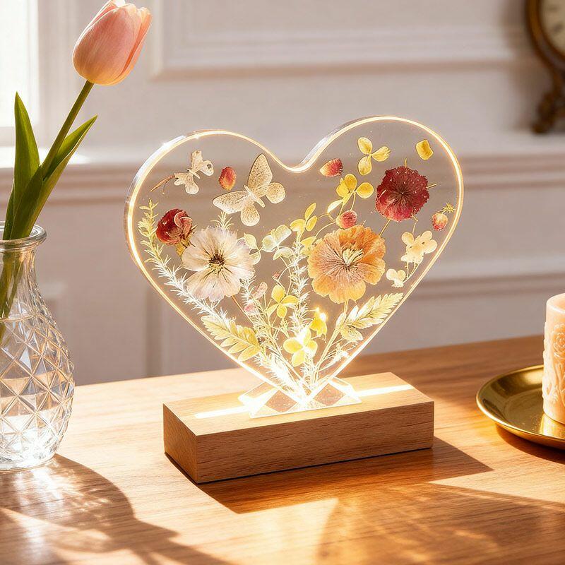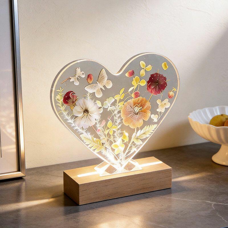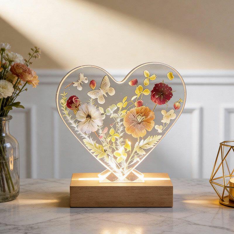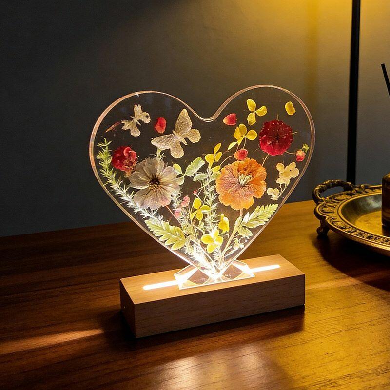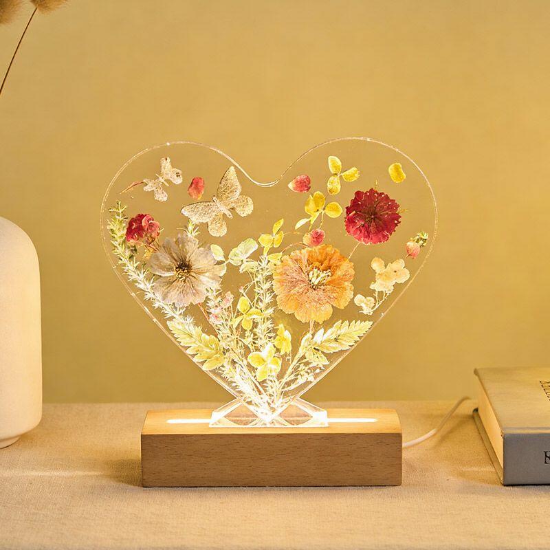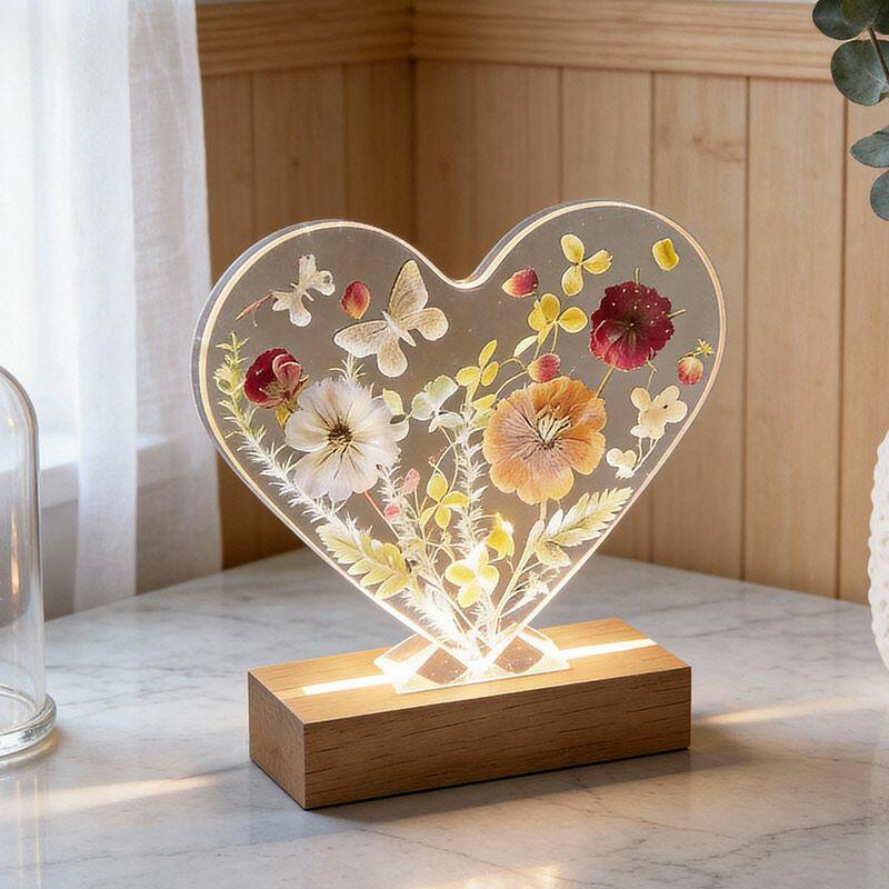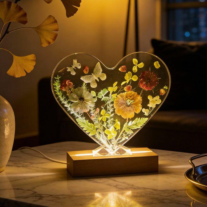Celebrate love and nature with the Reslol Romantic Floral Resin Lamp, a stunning heart-shaped night light that captures the delicate beauty of real flowers. Each lamp is carefully handcrafted, blending eco-friendly resin with preserved botanicals to create a one-of-a-kind piece that radiates warmth and elegance.