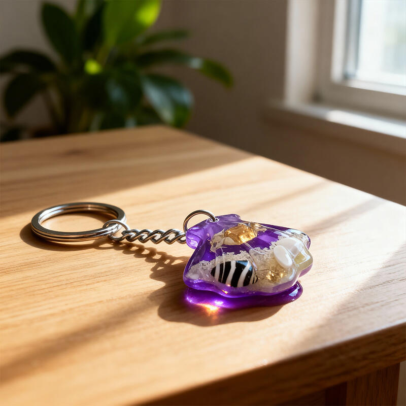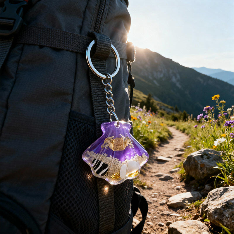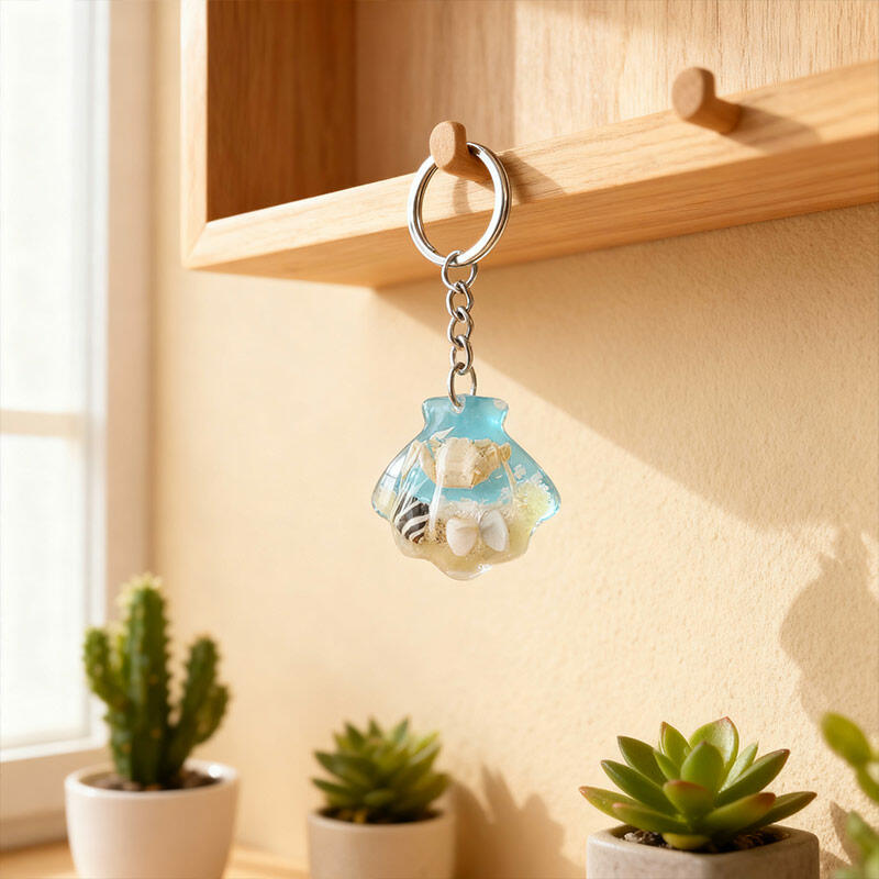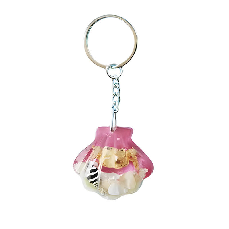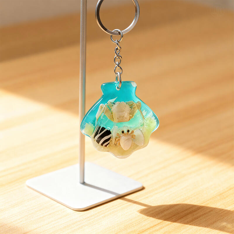 Enchanting Seashell Resin Keychain – Marine Theme with Crab, Sand, Conch & Shell