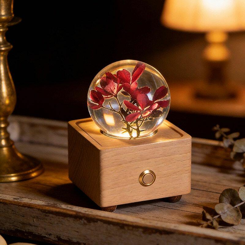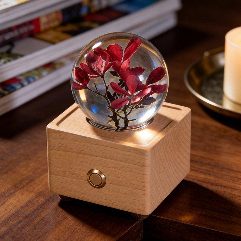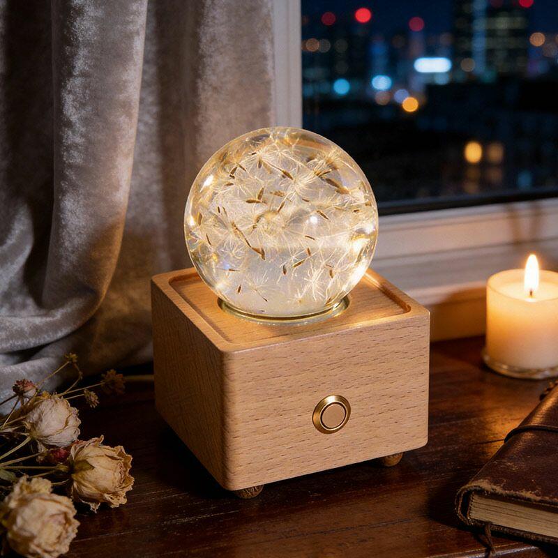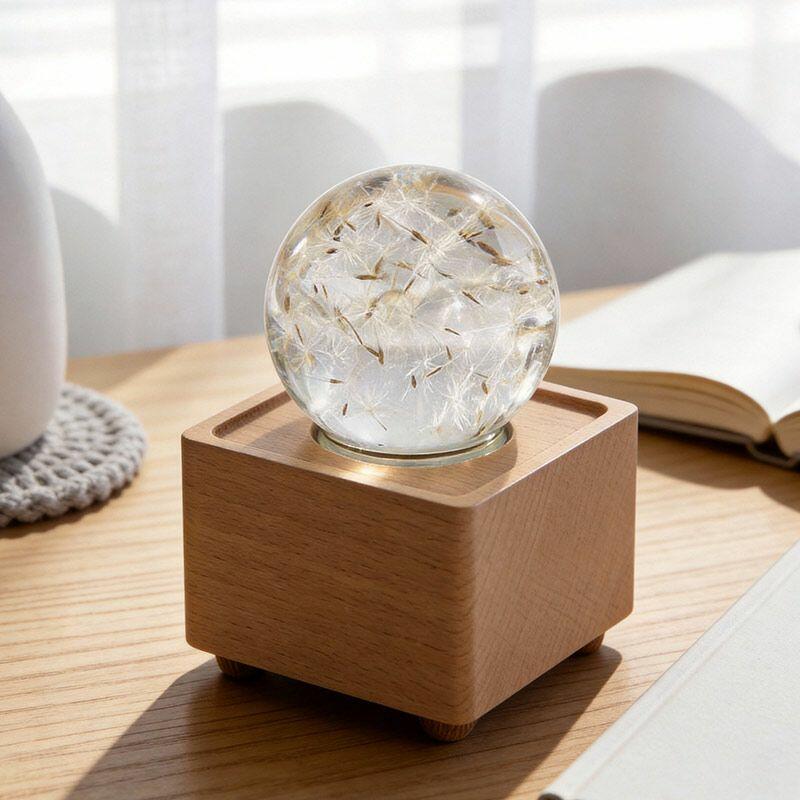 Eternal Dandelion & Jatropha Resin Lamp Crystal Ball Bluetooth Night Light