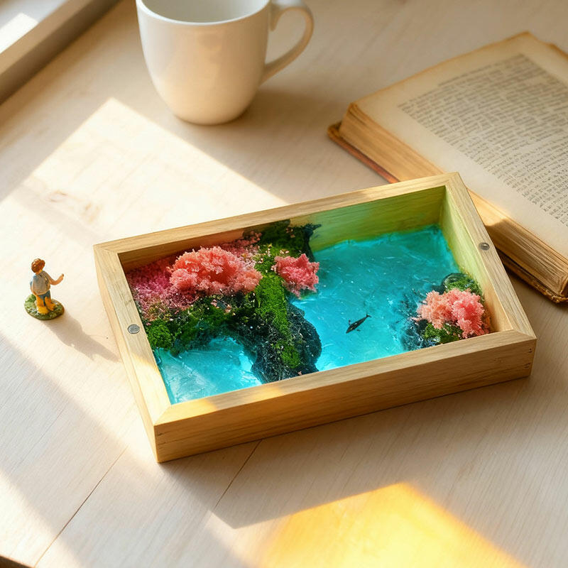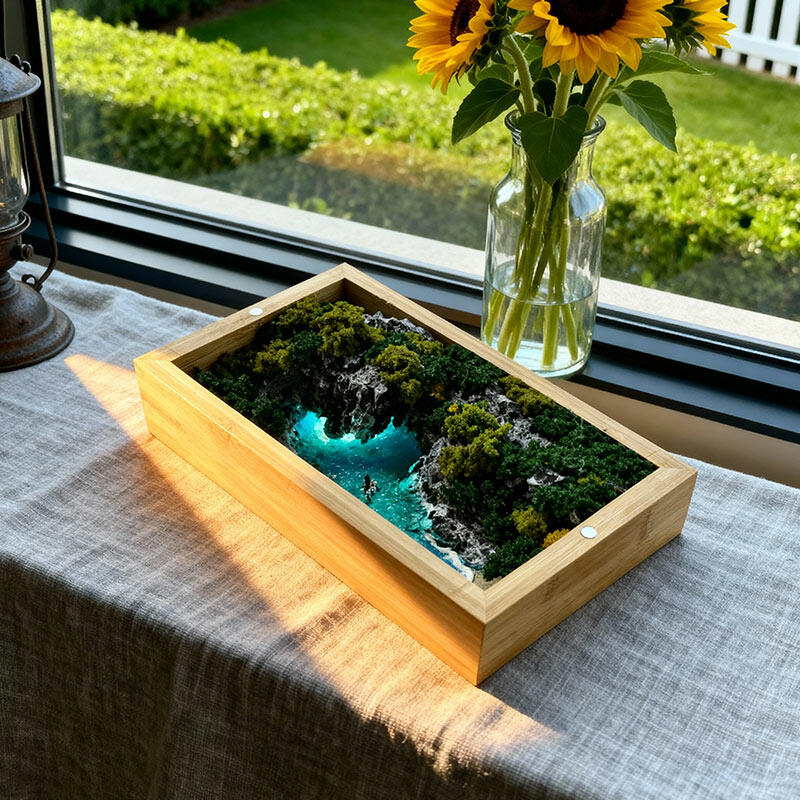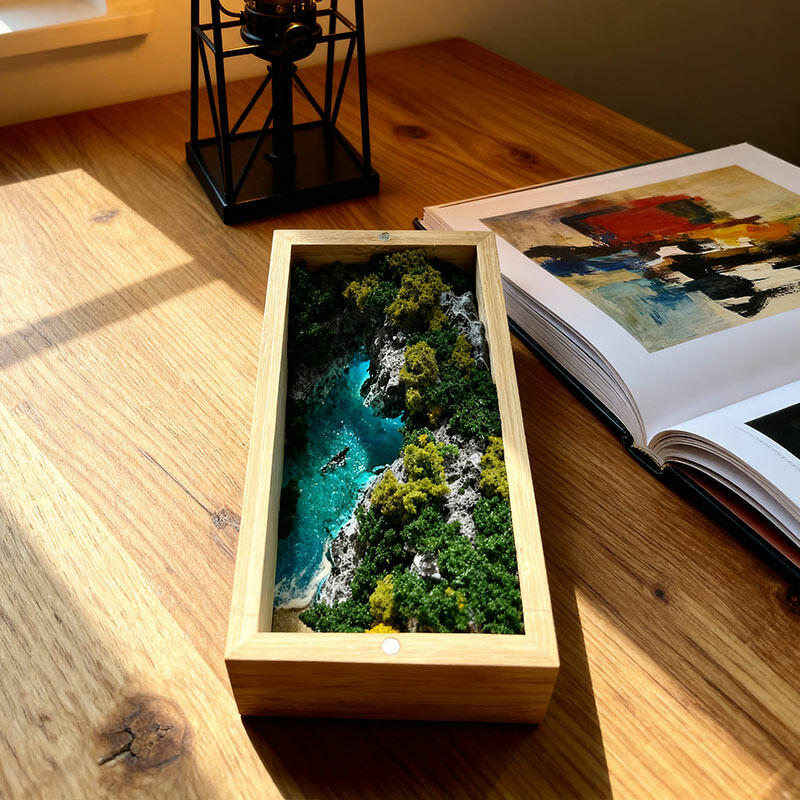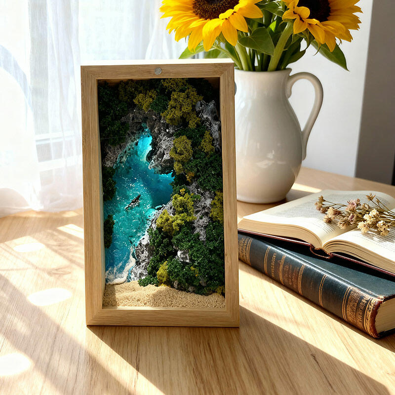 Brighten your space with Reslol’s handcrafted ethereal glow ocean resin night light, set in a natural bamboo box. This unique piece combines eco-friendly resin, warm LED light, and a charging station, bringing the sea’s calm indoors. Choose from two captivating marine scenes: Whale-Deer Heart Bay (gentle waves lapping a heart-shaped shoreline with artisan marine motifs) or Peach Blossom Island (vibrant island landscapes with soft, floral-inspired resin textures), each with a distinct nautical vibe.