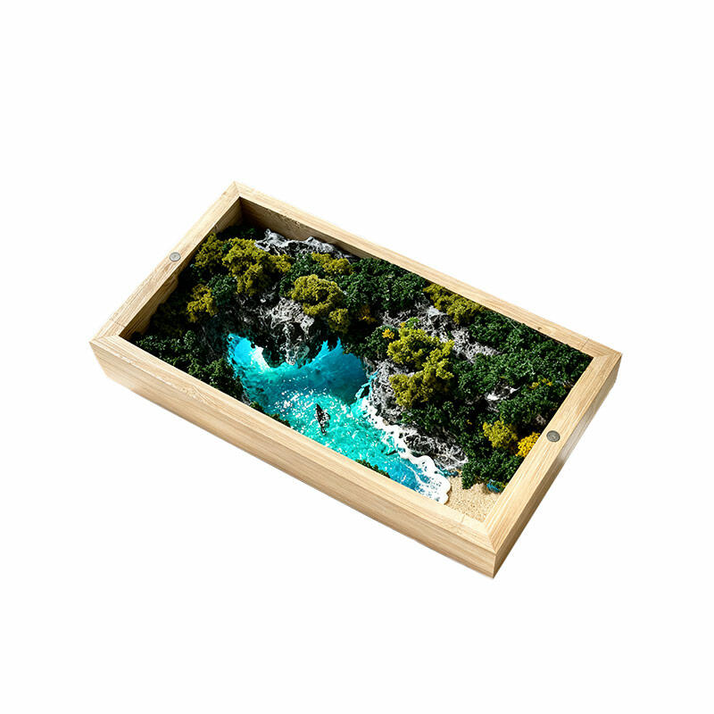 Under warm light, the resin craftsmanship shines: the heart bay’s waves ripple with lifelike texture, while the peach island features subtle resin "petals" mimicking coastal flora. The bamboo box adds earthy warmth as a sturdy base, perfect for desks, bedside tables, or shelves. As a night light, it casts a soft, dreamy glow—cozy for evenings or as a portable decor accent.