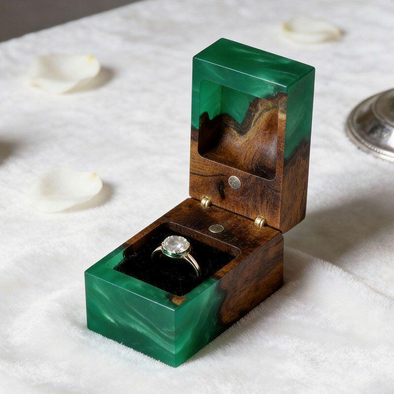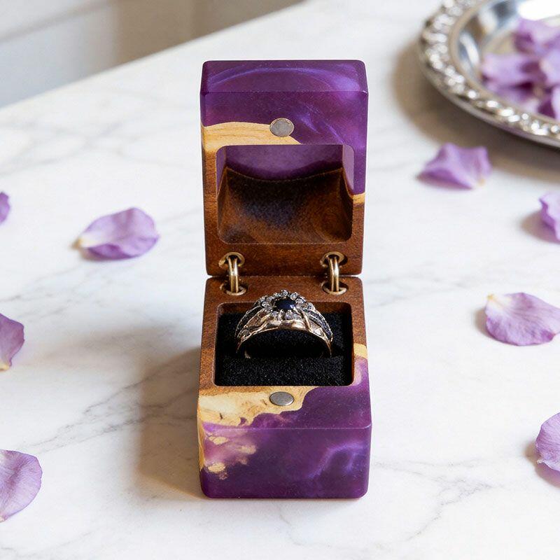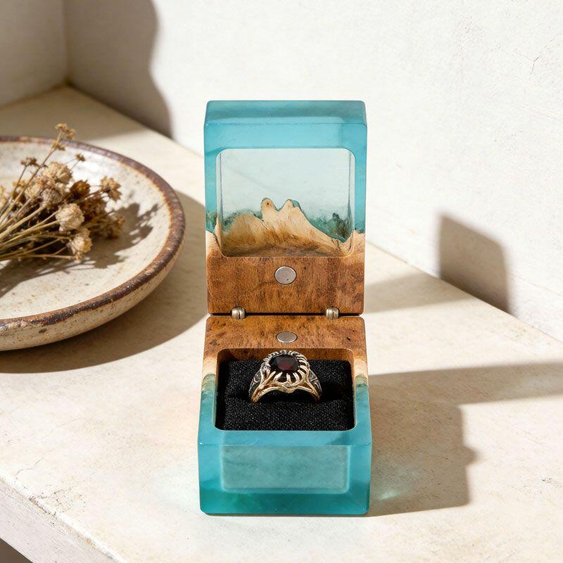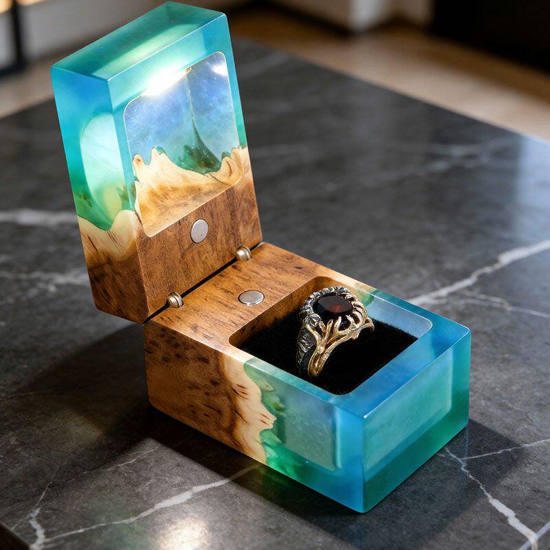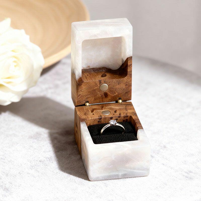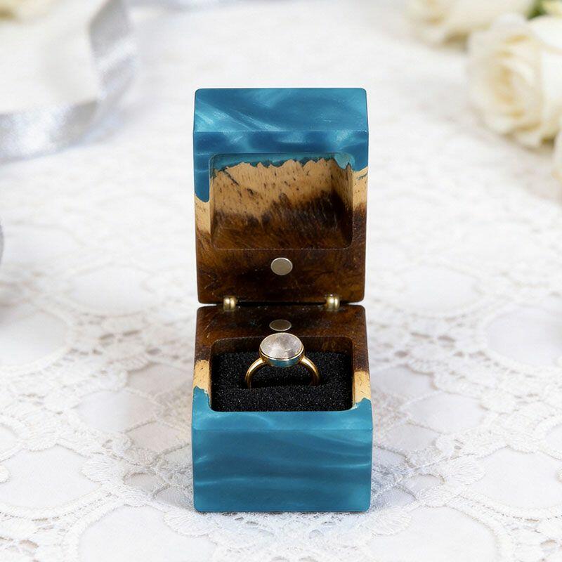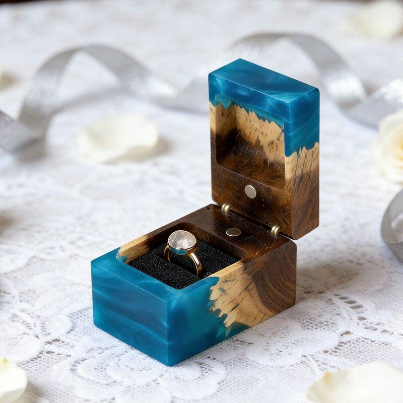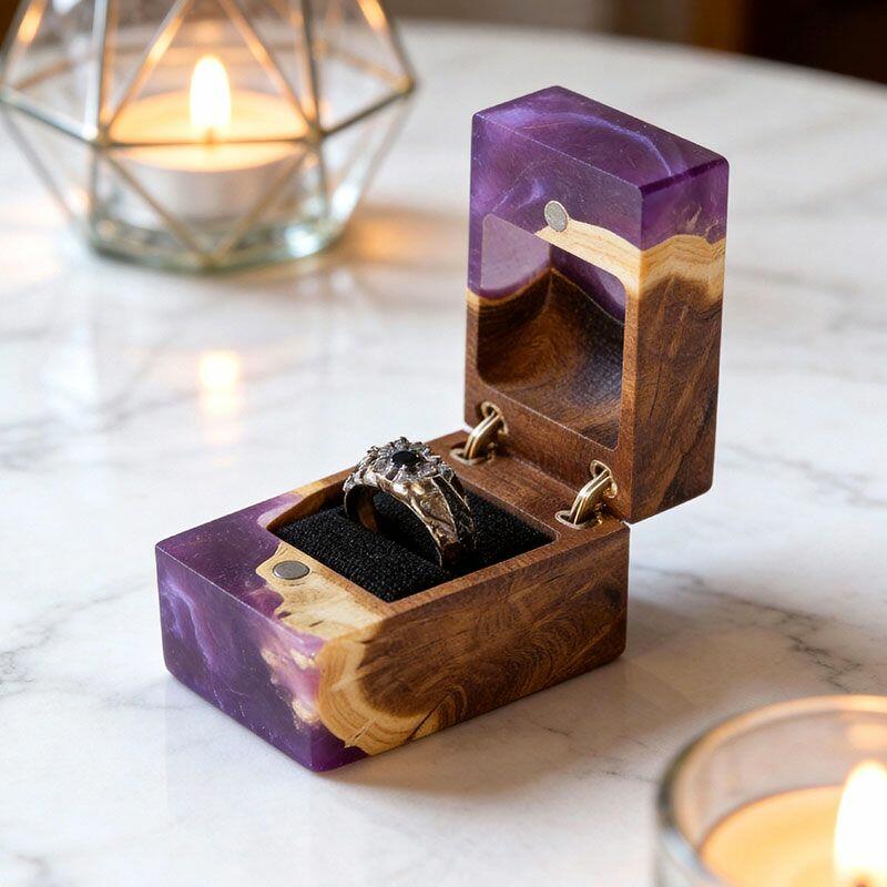 Ethereal Reslol Wood & Resin Rectangular Ring Box - Engagement Wedding Anniversary Gift for Her