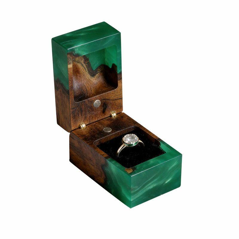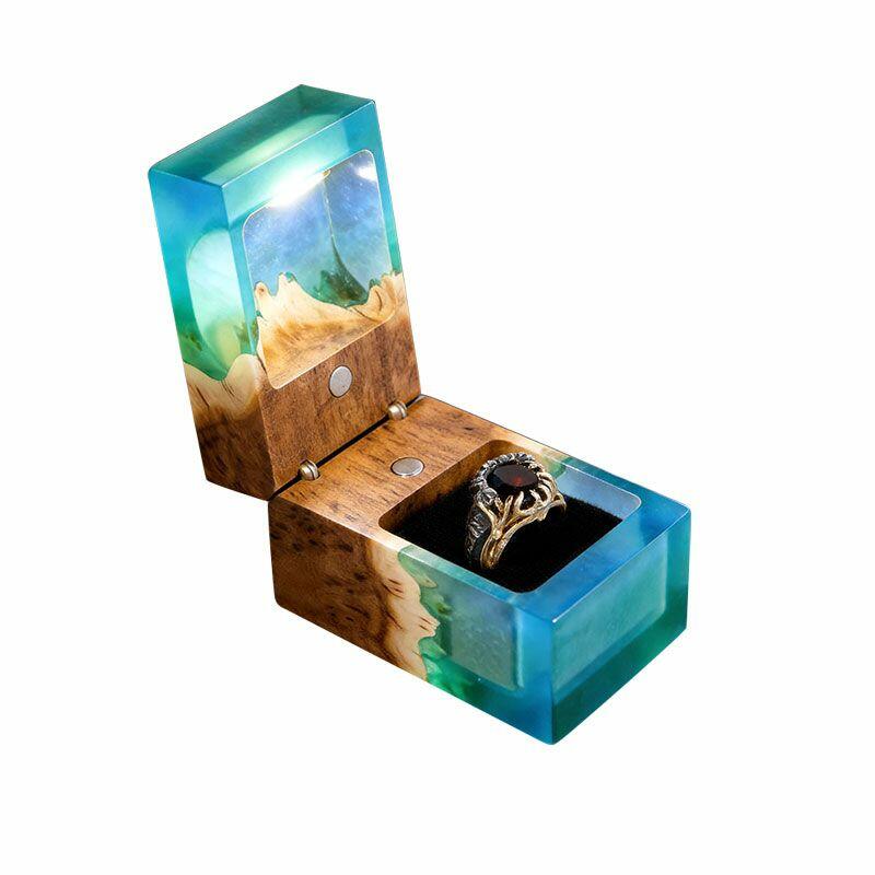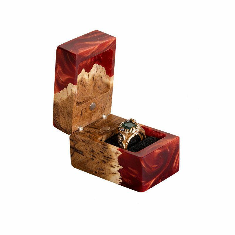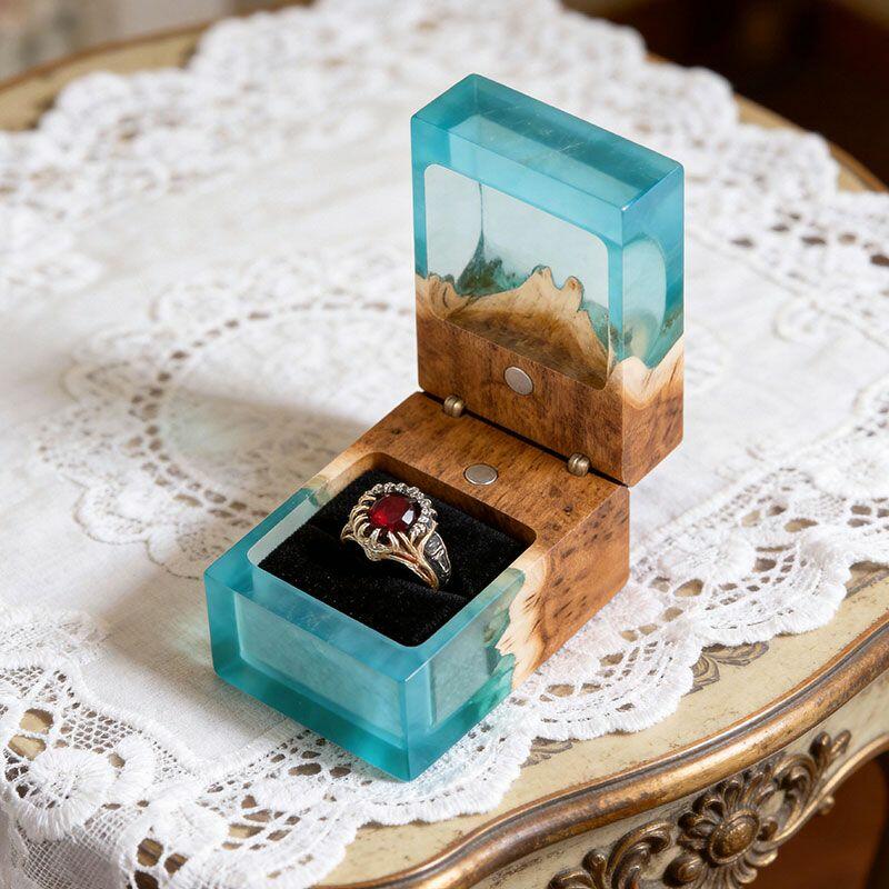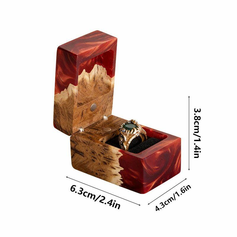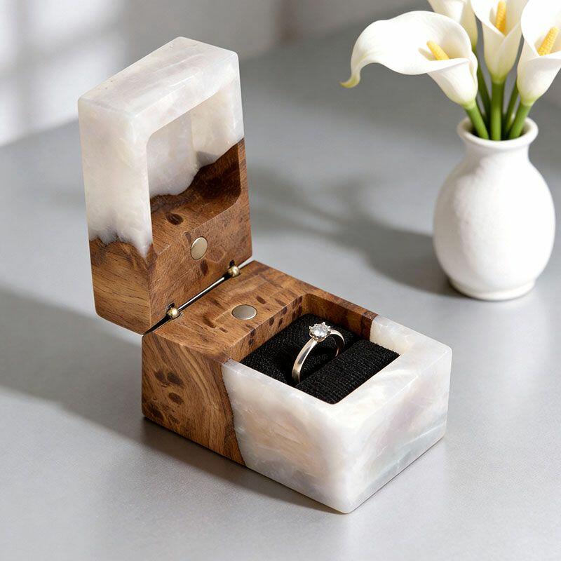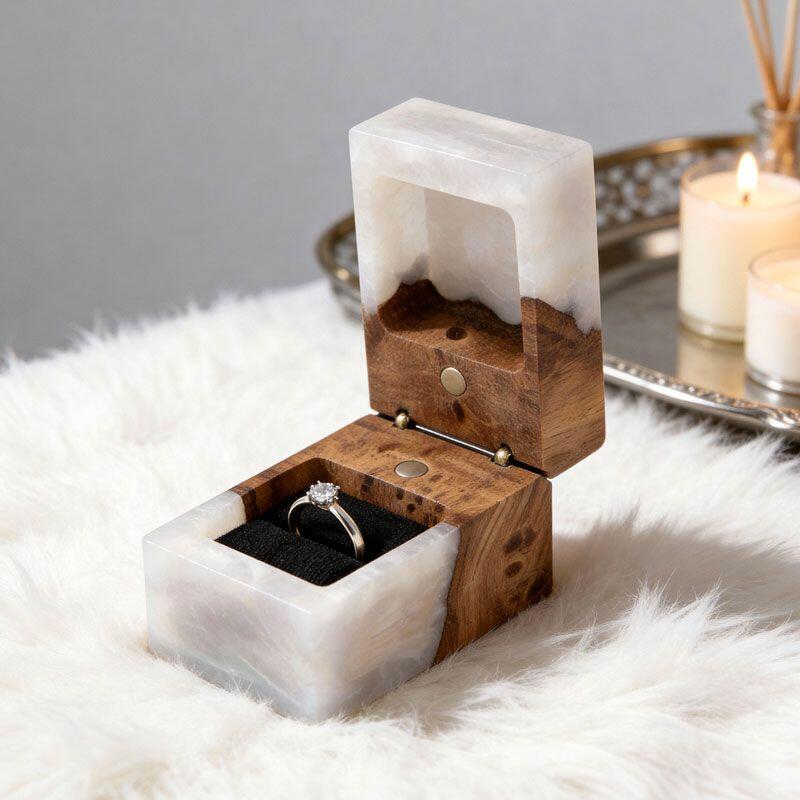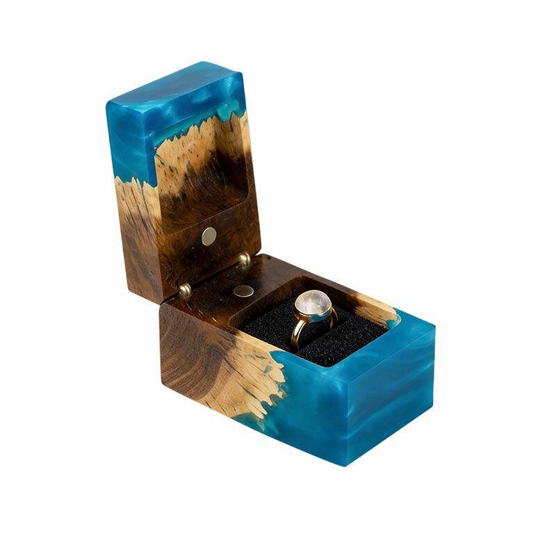 Ethereal Reslol Wood & Resin Rectangular Ring Box - Engagement Wedding Anniversary Gift for Her