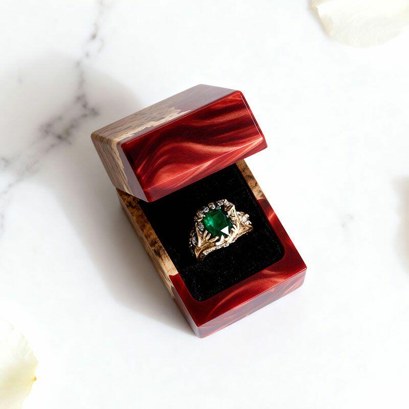 Celebrate her most cherished moments with the Ethereal Reslol Wood & Resin Rectangular Ring Box—a harmonious blend of artisanal craftsmanship and heartfelt sentiment. Handmade by skilled artisans, this ring box marries the warm, organic grain of natural wood with the smooth, glossy allure of resin, creating a piece that’s more than a jewelry storage box: it’s a wearable, worthy art piece, designed exclusively for “her.”