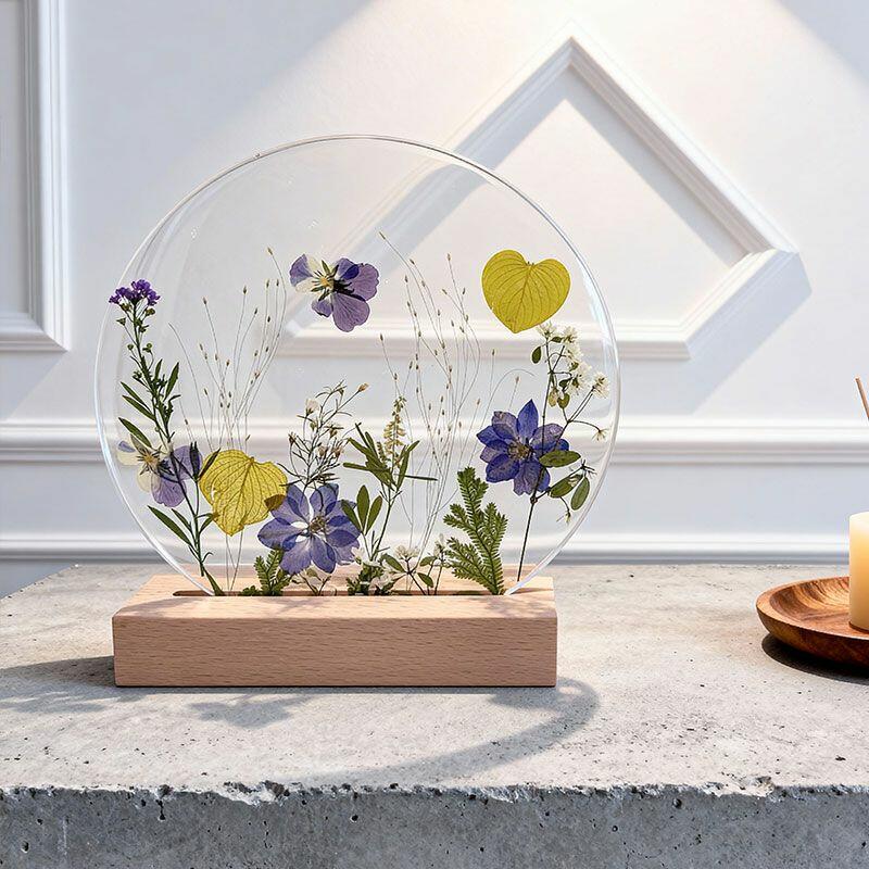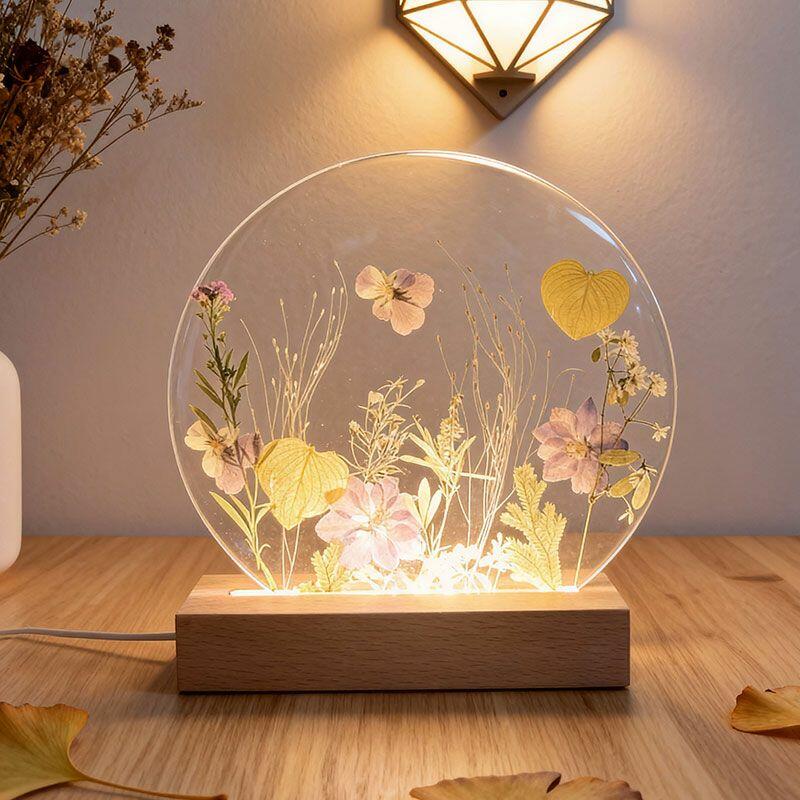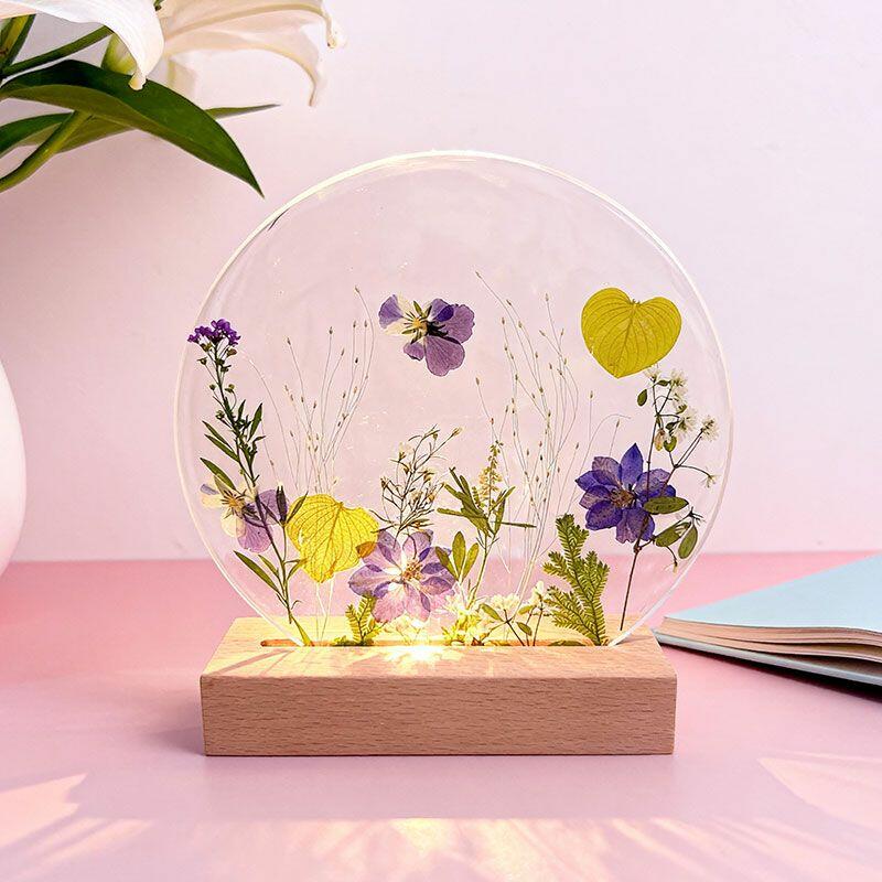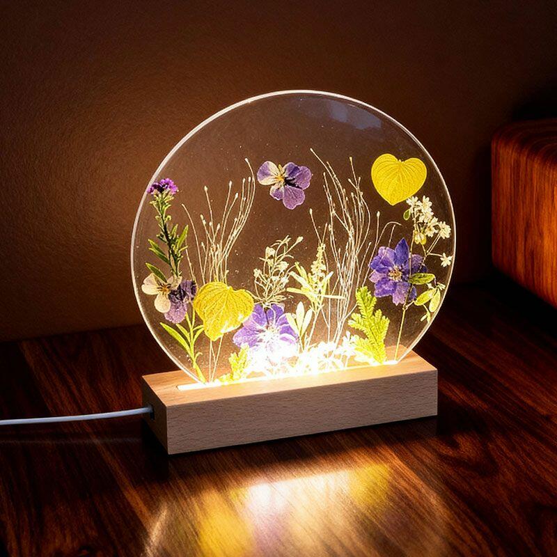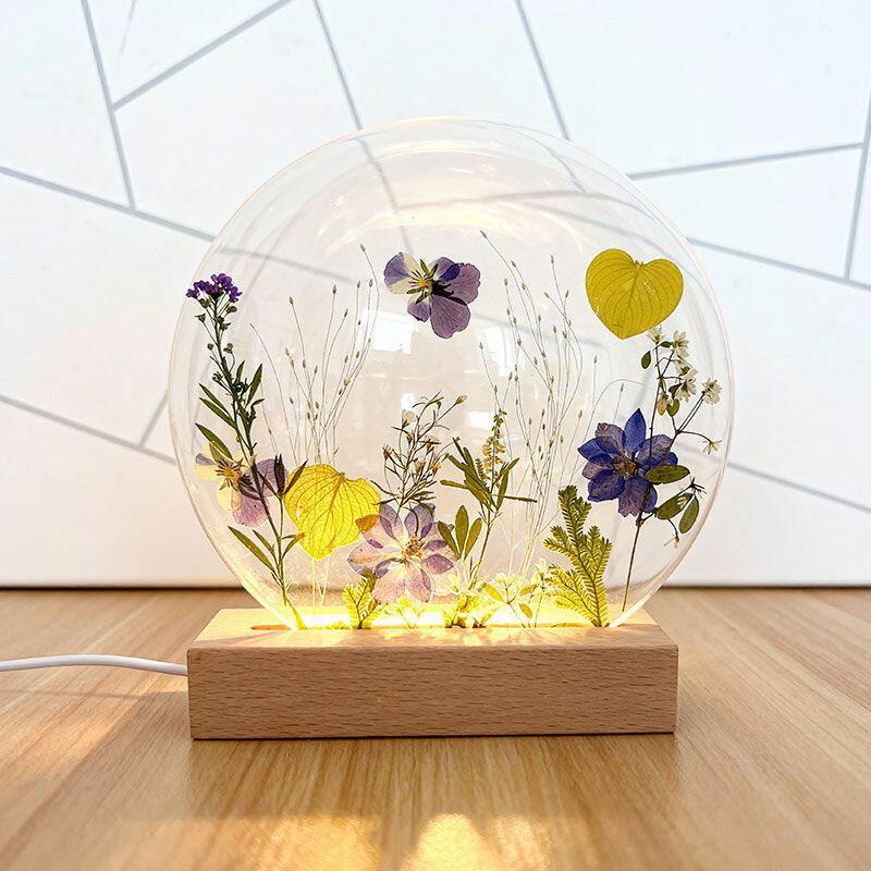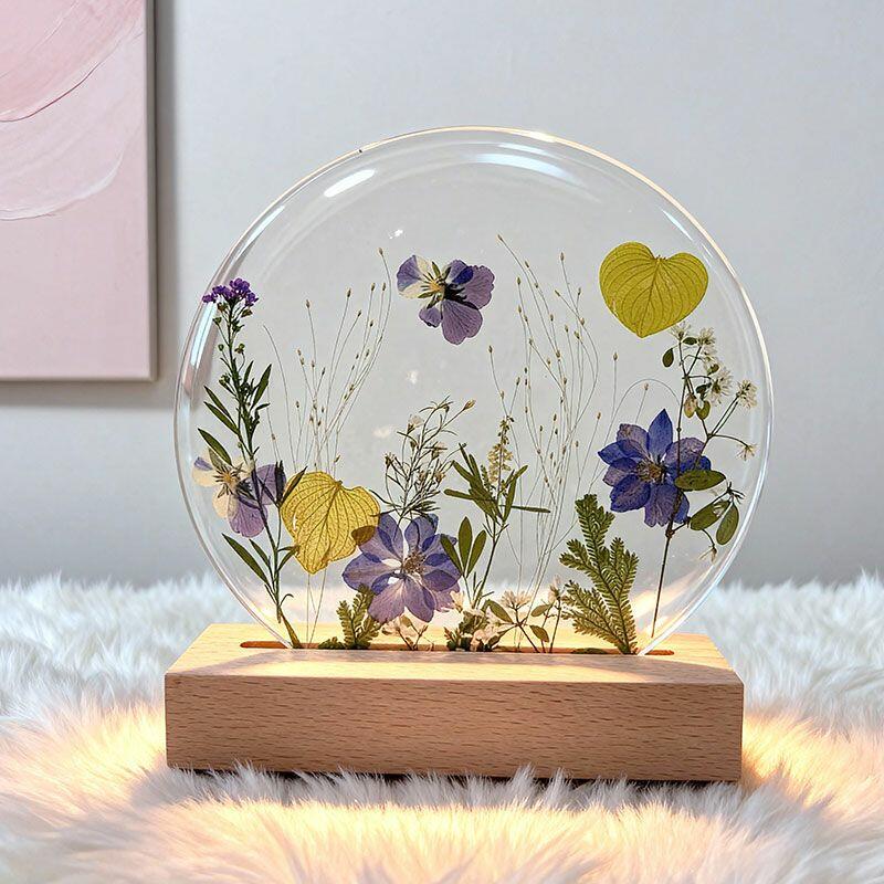 ✅Handcrafted Uniqueness – Each lamp is one-of-a-kind, with natural variations in flower arrangement, resin texture, and manual measurements.