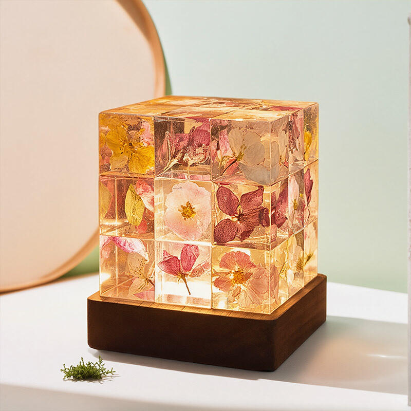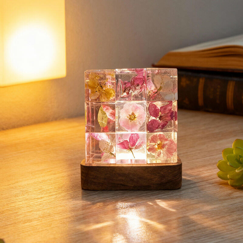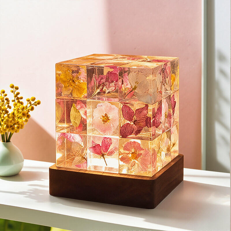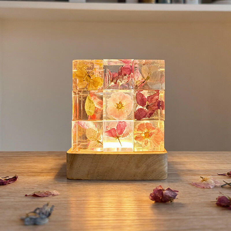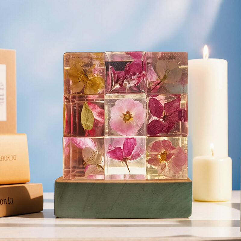 Reslol’s Artisanal Resin Floral Cube Night Light marries geometric elegance with natural beauty, featuring real flowers encased in crystal-clear resin. The sleek Cube shape, paired with soft LED glow, illuminates delicate petals to create a warm, intimate ambiance—perfect for bedrooms, nightstands, or as a unique decor piece.