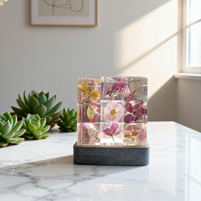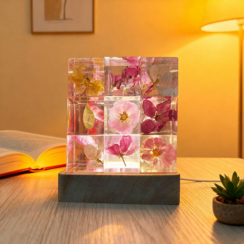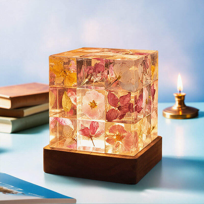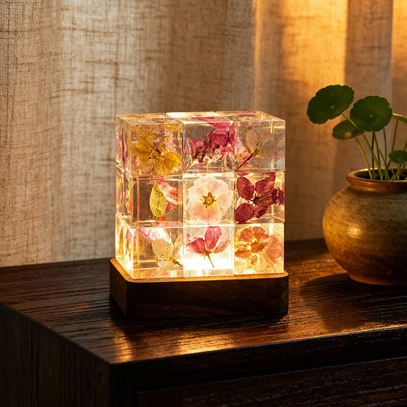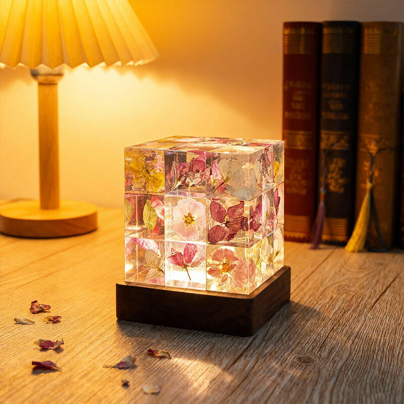 Reslol’s Artisanal Resin Floral Cube Night Light marries geometric elegance with natural beauty, featuring real flowers encased in crystal-clear resin. The sleek Cube shape, paired with soft LED glow, illuminates delicate petals to create a warm, intimate ambiance—perfect for bedrooms, nightstands, or as a unique decor piece.