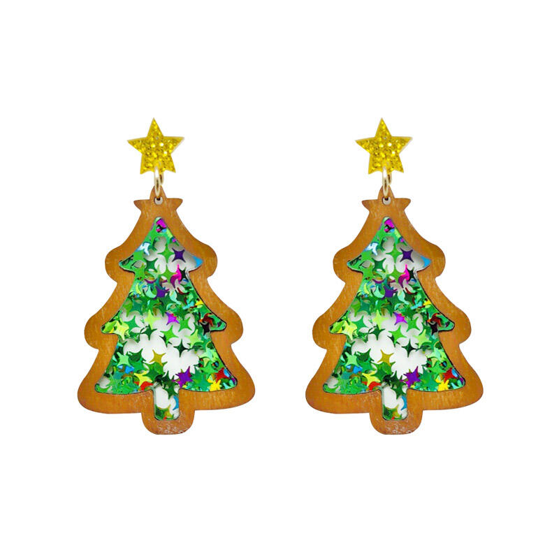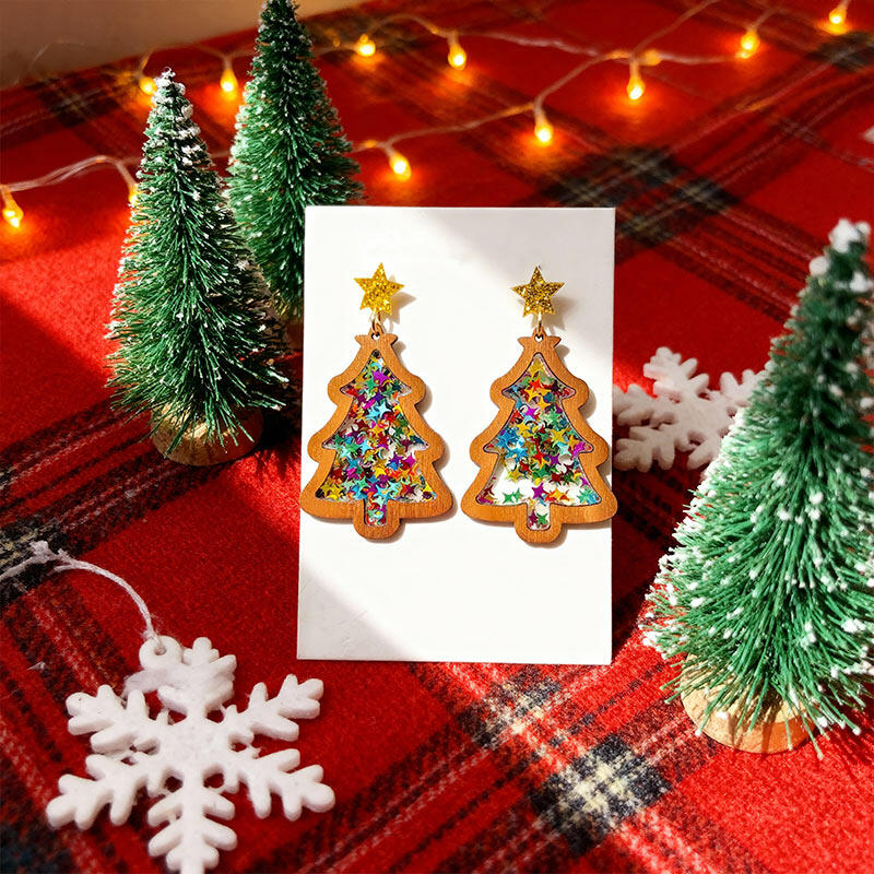 Glistening Christmas Glitter Resin Earrings Christmas Tree-Shape