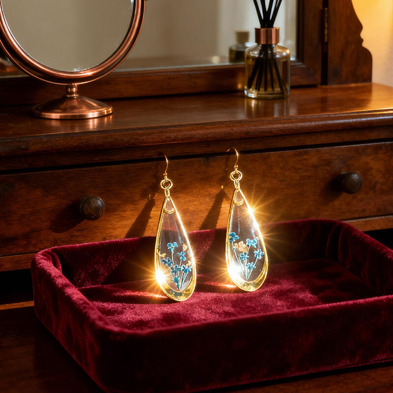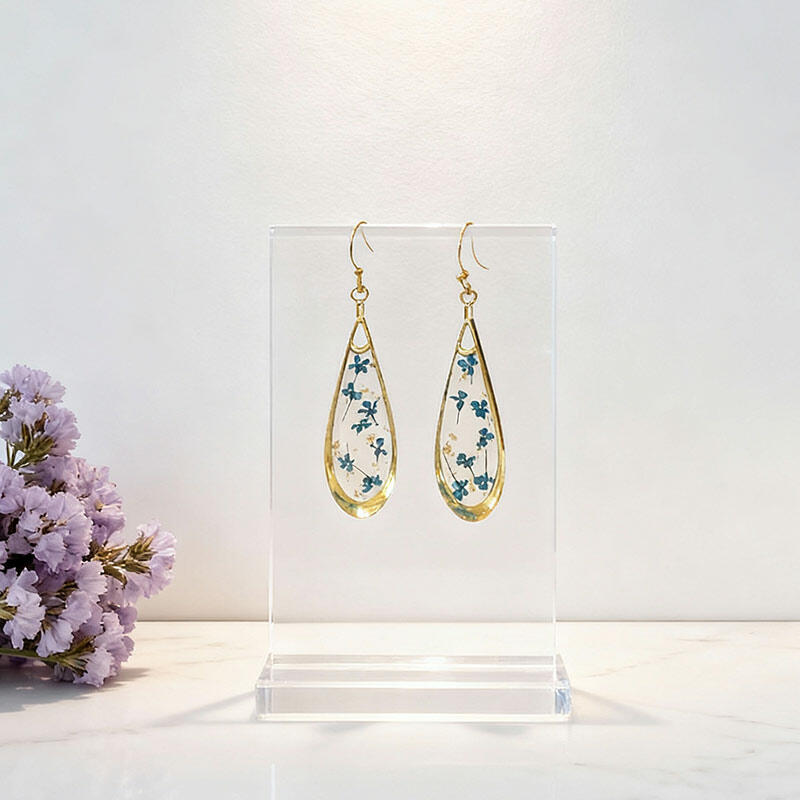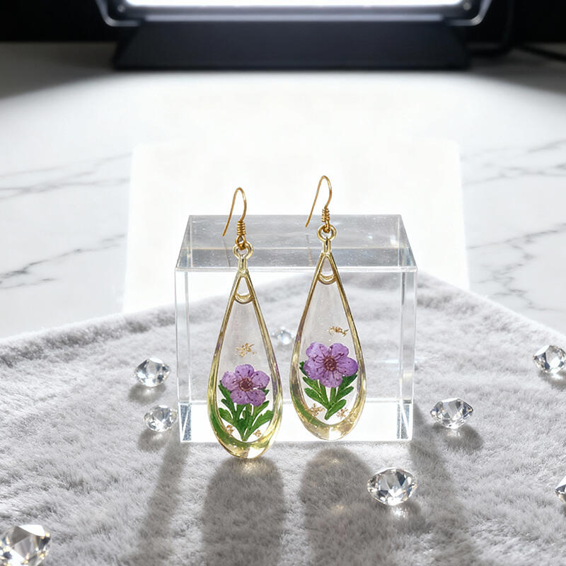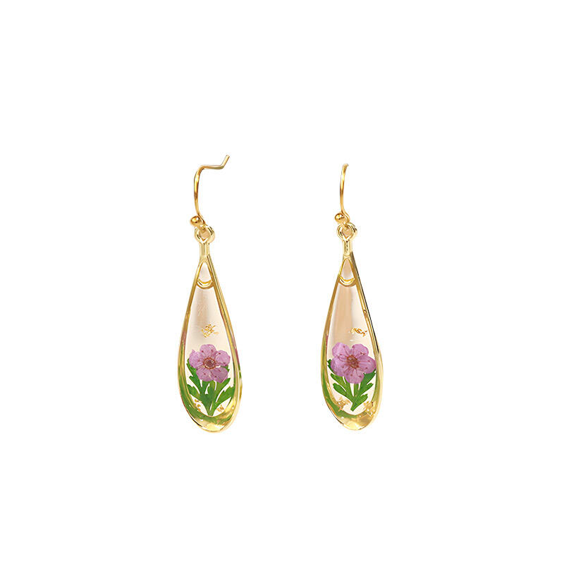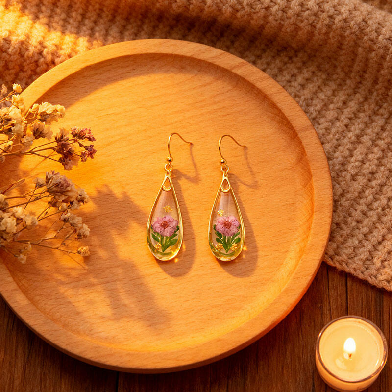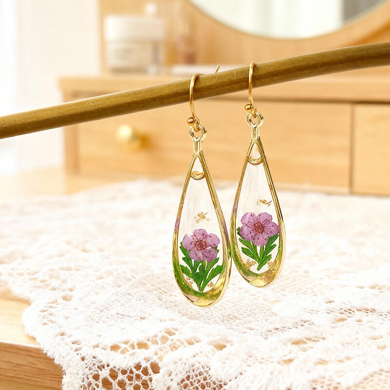 Gold-Plated Preserved Flower Earrings – Retro Handmade Resin Dainty Floral Jewelry