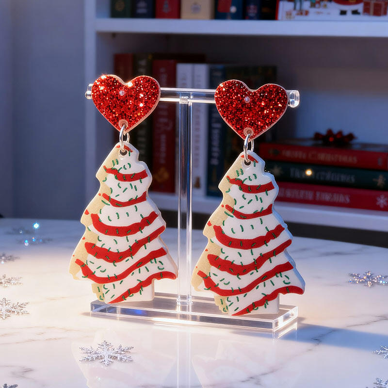 The use of acrylic gives these earrings a clear, shiny appearance that catches the light beautifully. The Christmas tree shape is a classic symbol of Christmas, while the heart shape adds a touch of love and warmth.