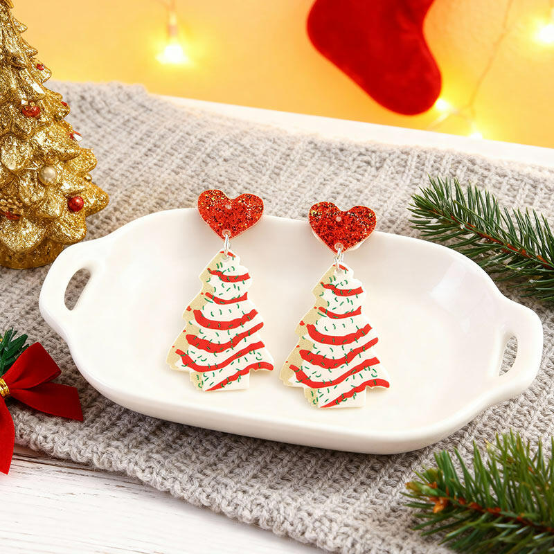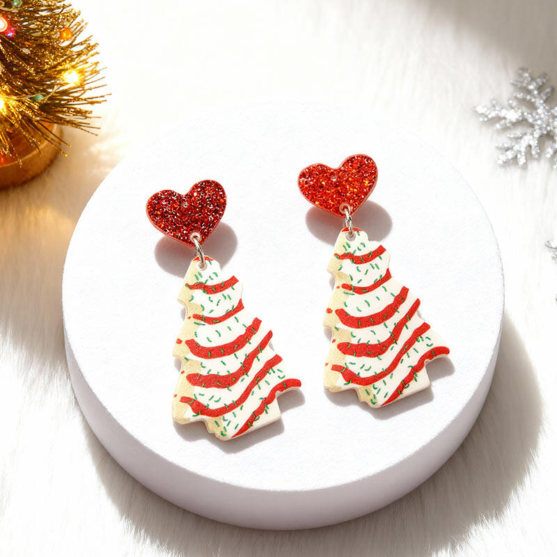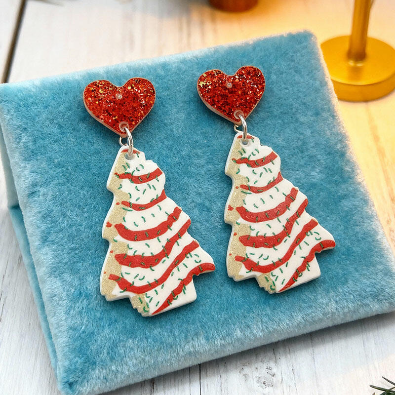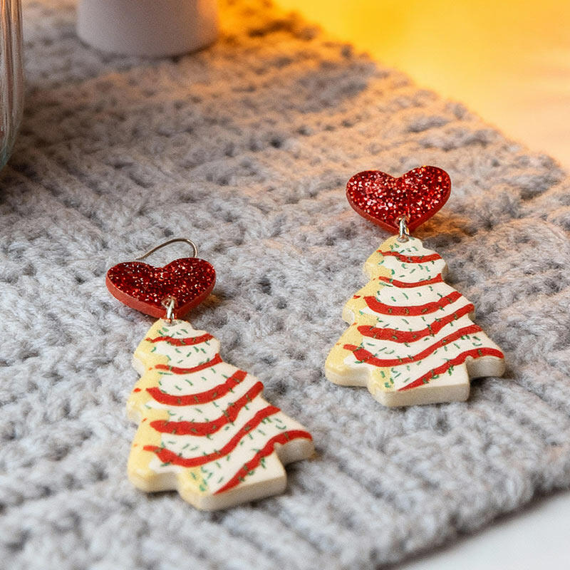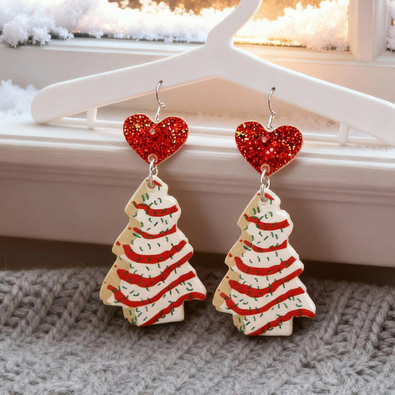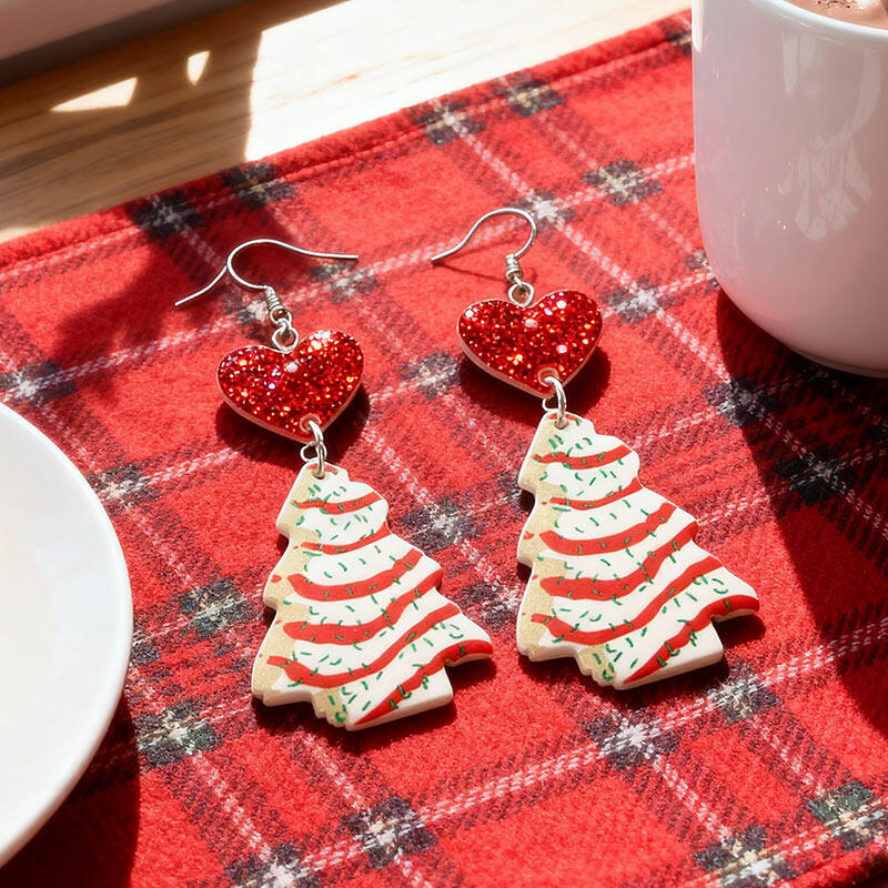 Gorgeous Festive Acrylic Christmas Tree & Heart Earrings - Must-have for Holidays