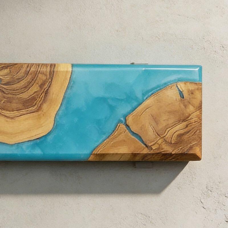 Introducing the Reslol Artisanal Blue Resin Wood Magnetic Knife Holder, where practical kitchen storage meets handcrafted artistry. Made from eco-friendly resin and reclaimed wood, this wall-mounted organizer features vibrant blue resin swirled through natural wood grain, creating a unique blend of color and texture that elevates any kitchen wall.