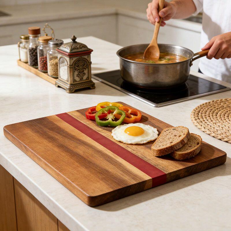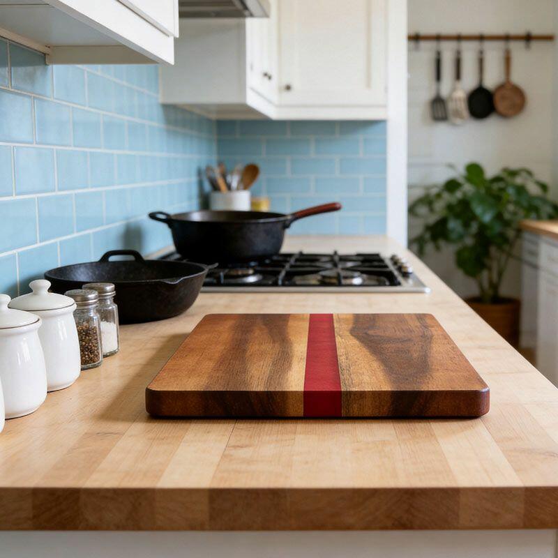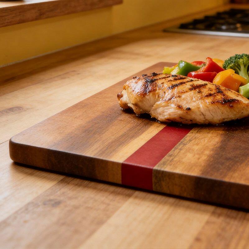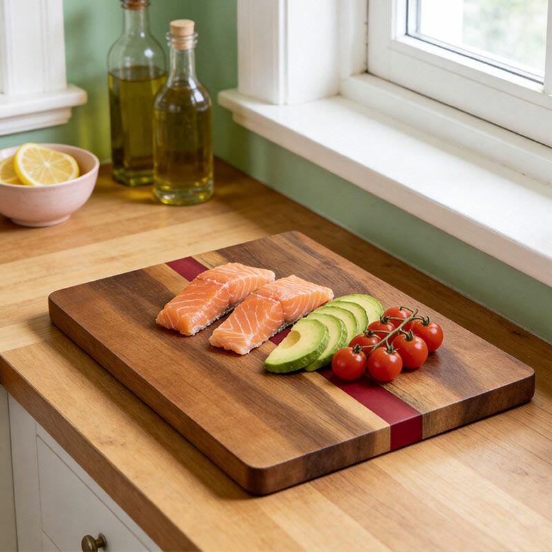 Handcrafted Red Resin-Wood Rectangle Home Kitchen Cutting Board | Reslol