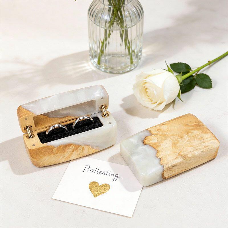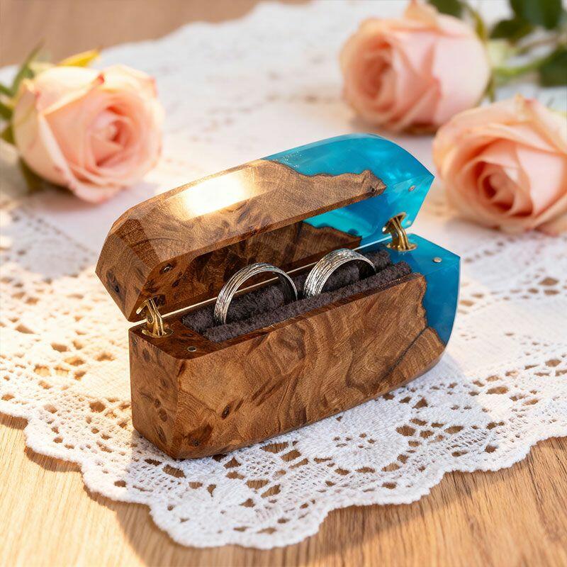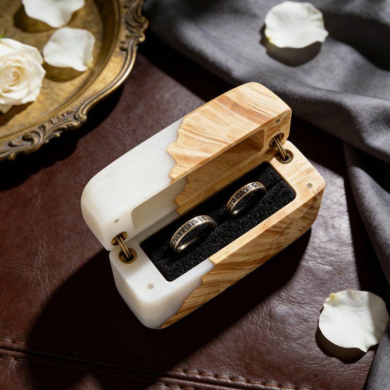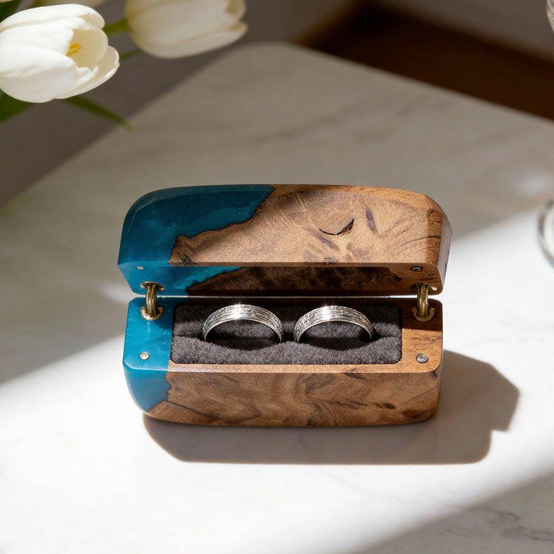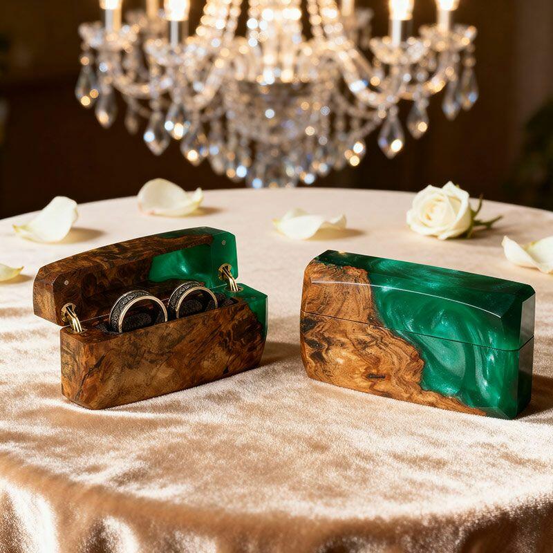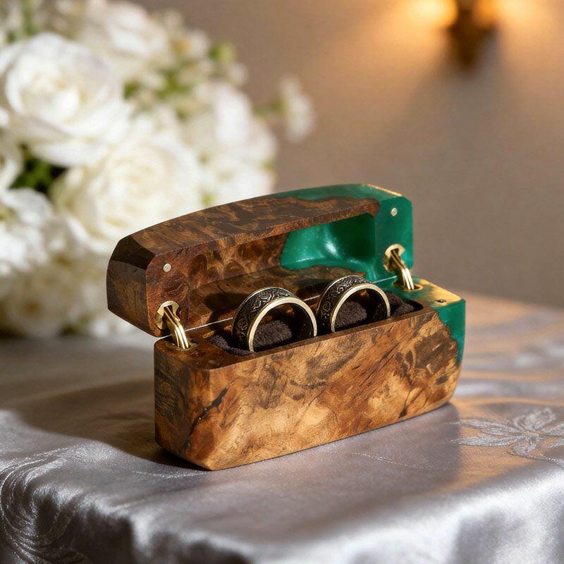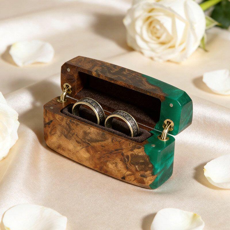 Celebrate “us” with the Heritage Crafted Reslol Dual-Ring Resin-Wood Square Box—a high-quality treasure where tradition meets artistry. Shaped by master artisans, this square ring box marries wood’s earthy warmth with resin’s sleek luminosity, creating a compact yet luxurious piece that balances functionality (dual-ring storage) with decorative allure (a lovely addition to your home or wedding display).